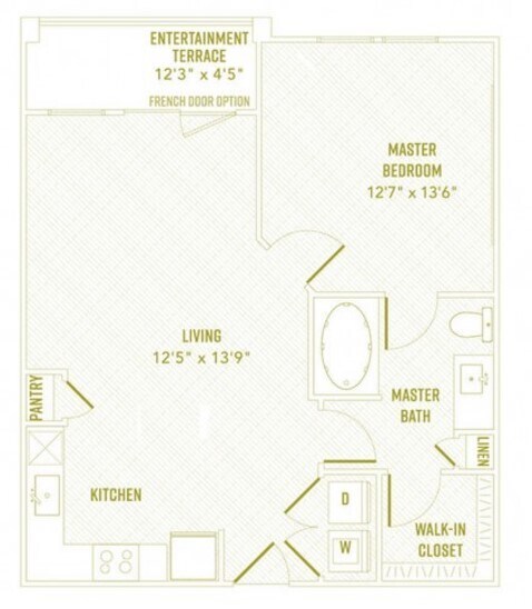 1 Dormitorio, 1 Baño, 811 pies²Disponible AhoraGalería del Modelo