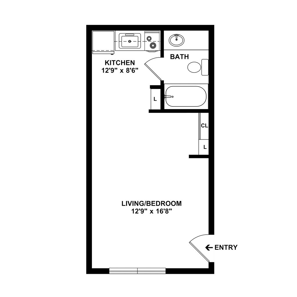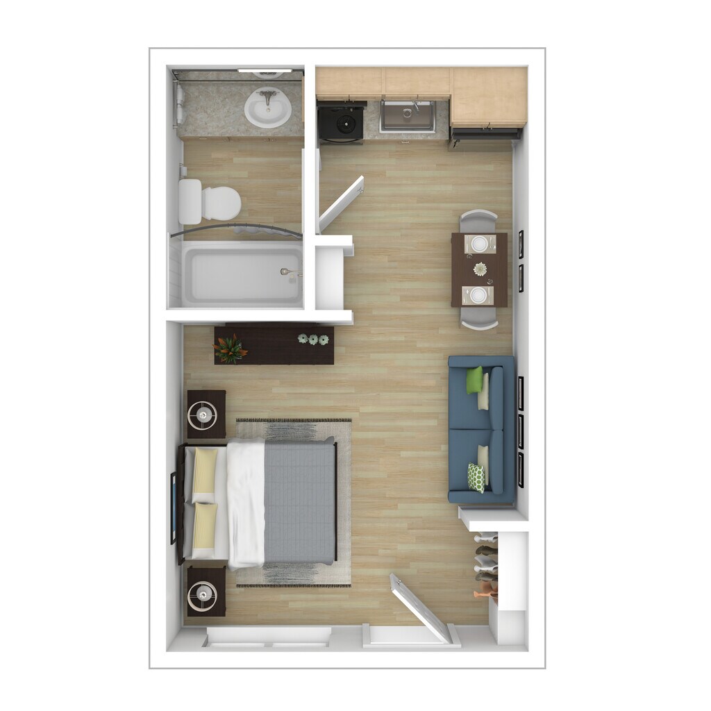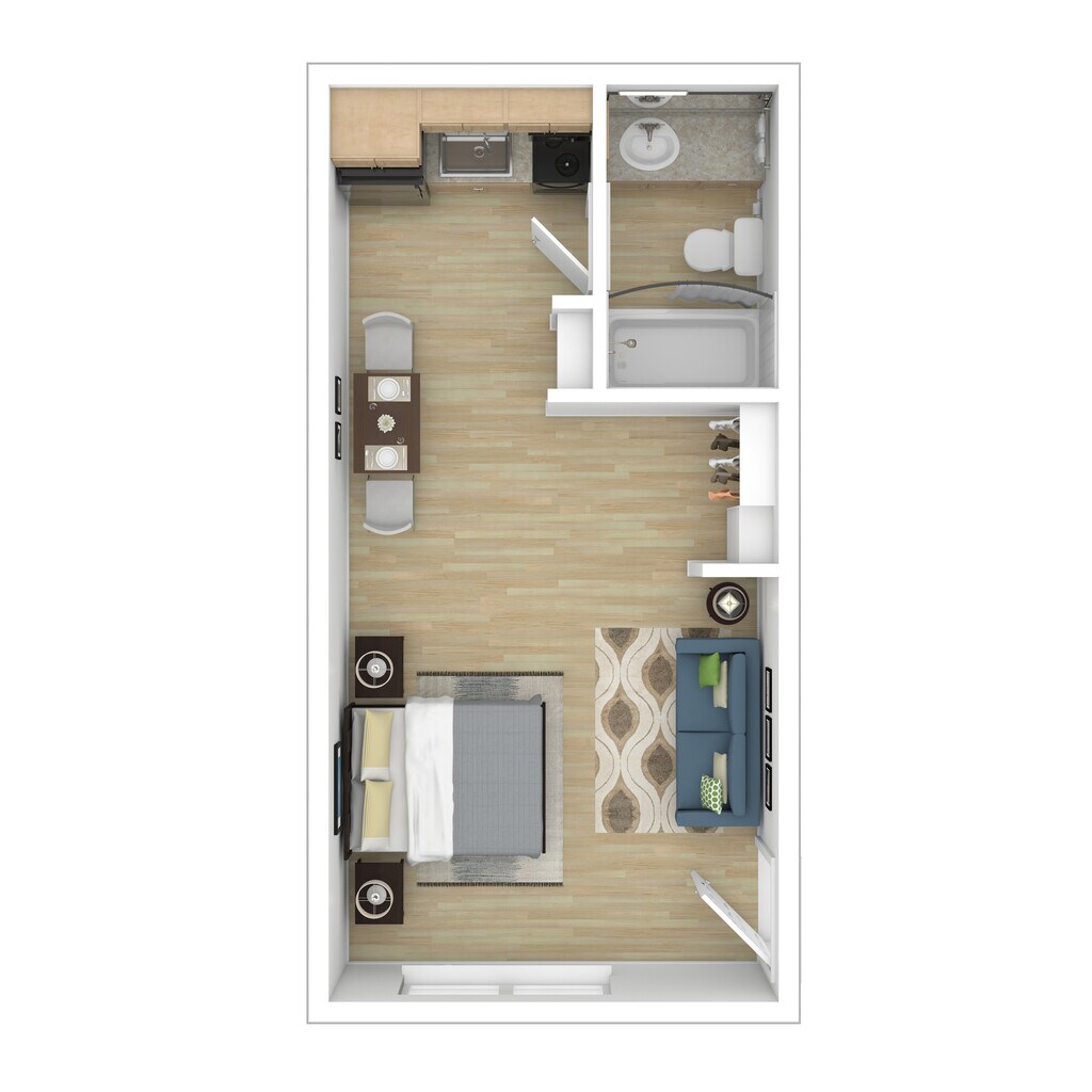 Estudio, 1 Baño, 279 pies²Disponible AhoraGalería del Modelo