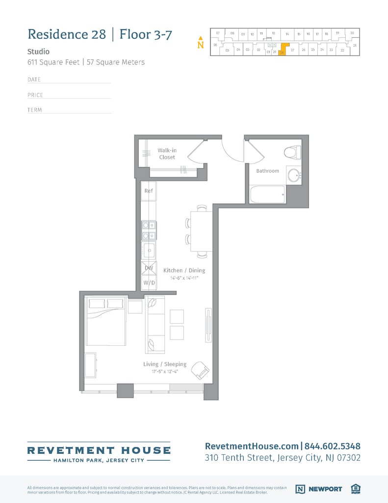 R-S3 - Plano 1 Unidad de apartamento: REV0728Modelo de apartamento: R-S3Estudio, 1 Baño, 611 sq ftDisponible AhoraR-S1