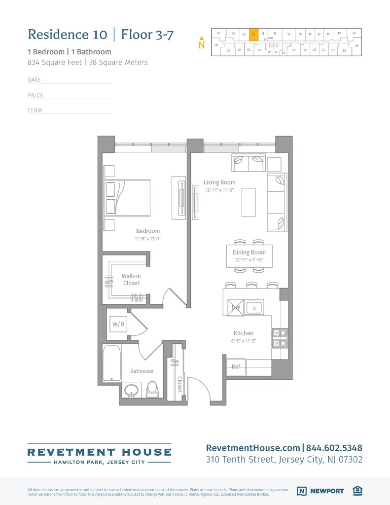 1 Dormitorio, 1 Baño, 836 pies²Disponible AhoraGalería del Modelo