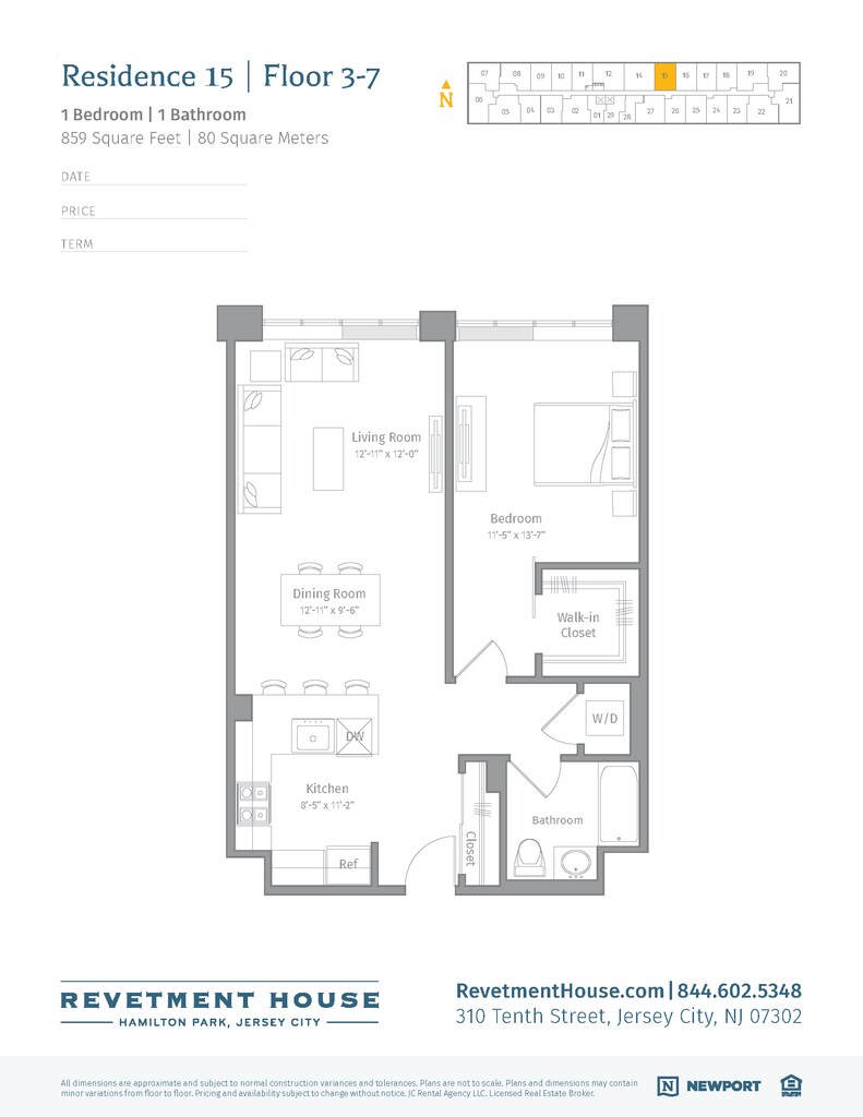 1 Dormitorio, 1 Baño, 859 pies²Galería del Modelo