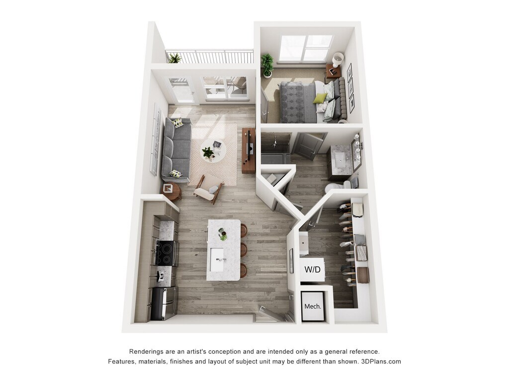 1 Dormitorio, 1 Baño, 728-738 pies²Disponible AhoraGalería del Modelo