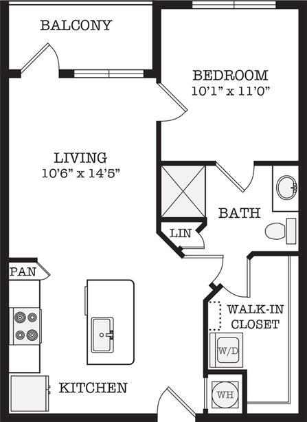 Modelo de apartamento: A101 Dormitorio, 1.5 Baños, 972 sq ftDisponible Ahora![]()
