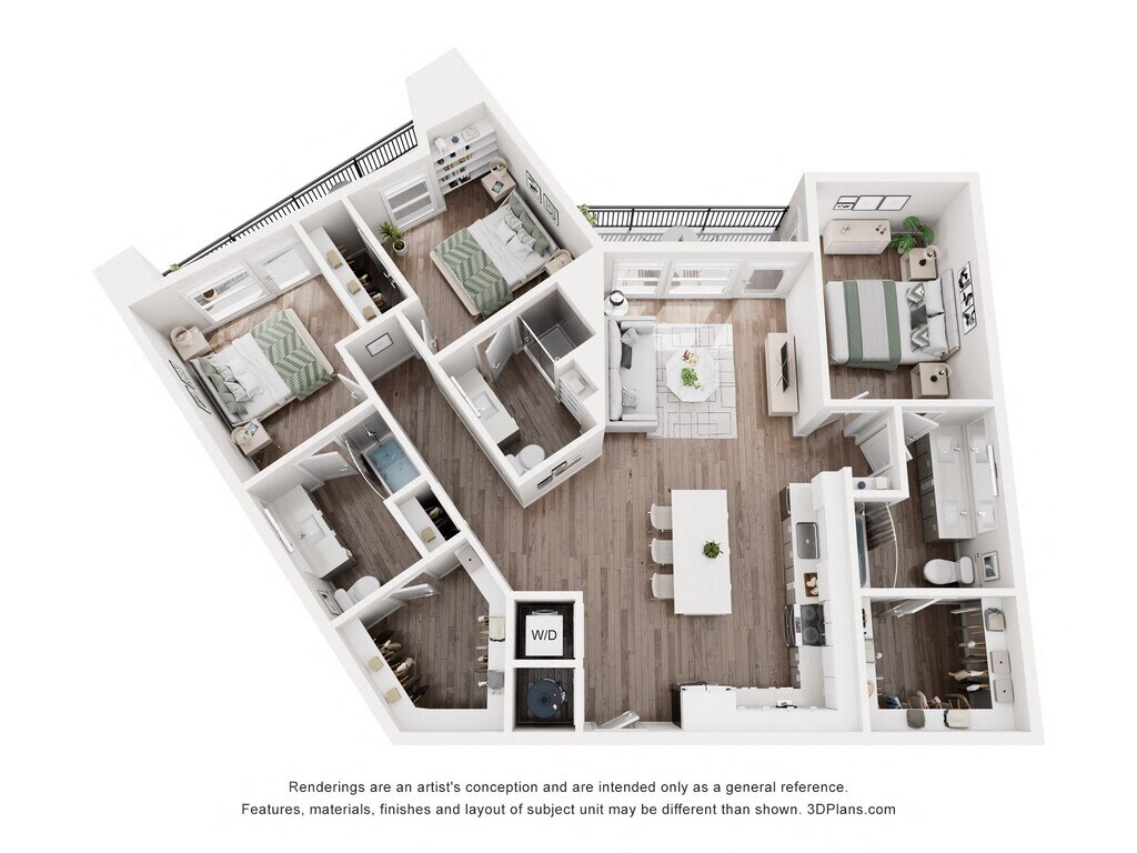 1 Dormitorio, 1 Baño, 735 pies²Disponible AhoraGalería del Modelo