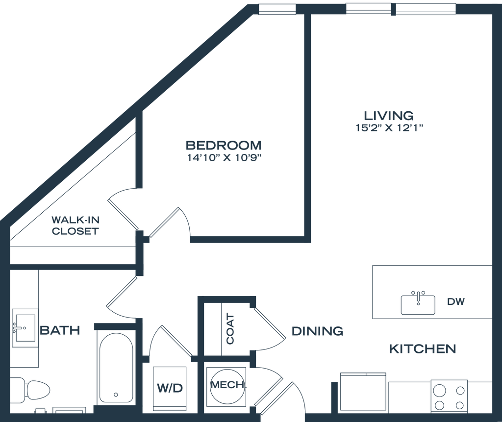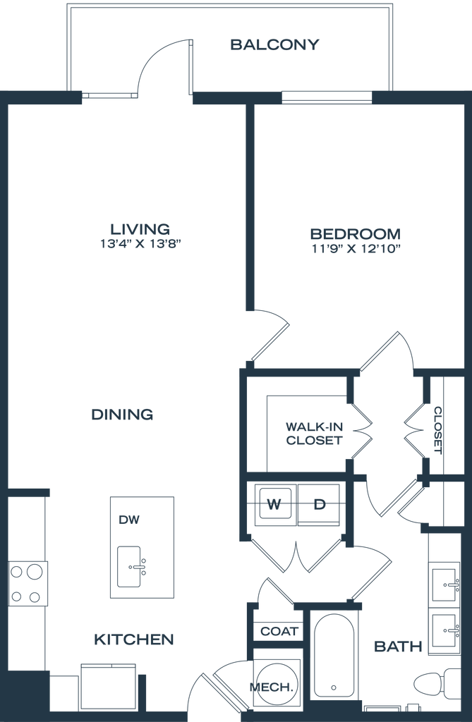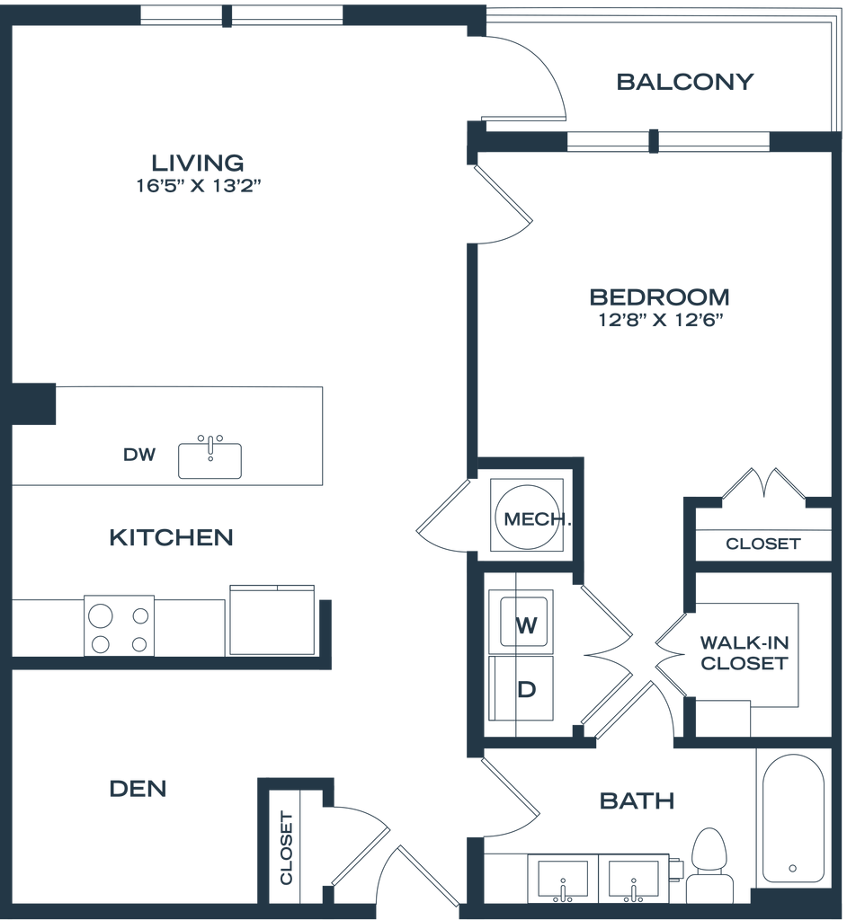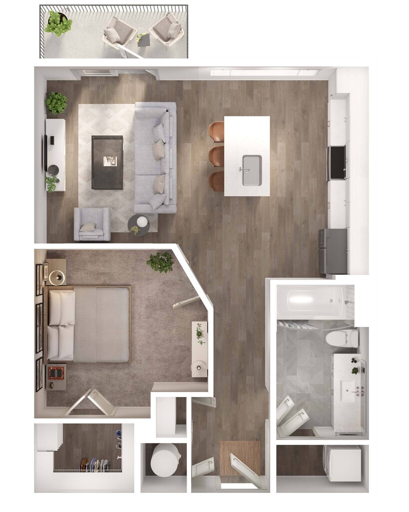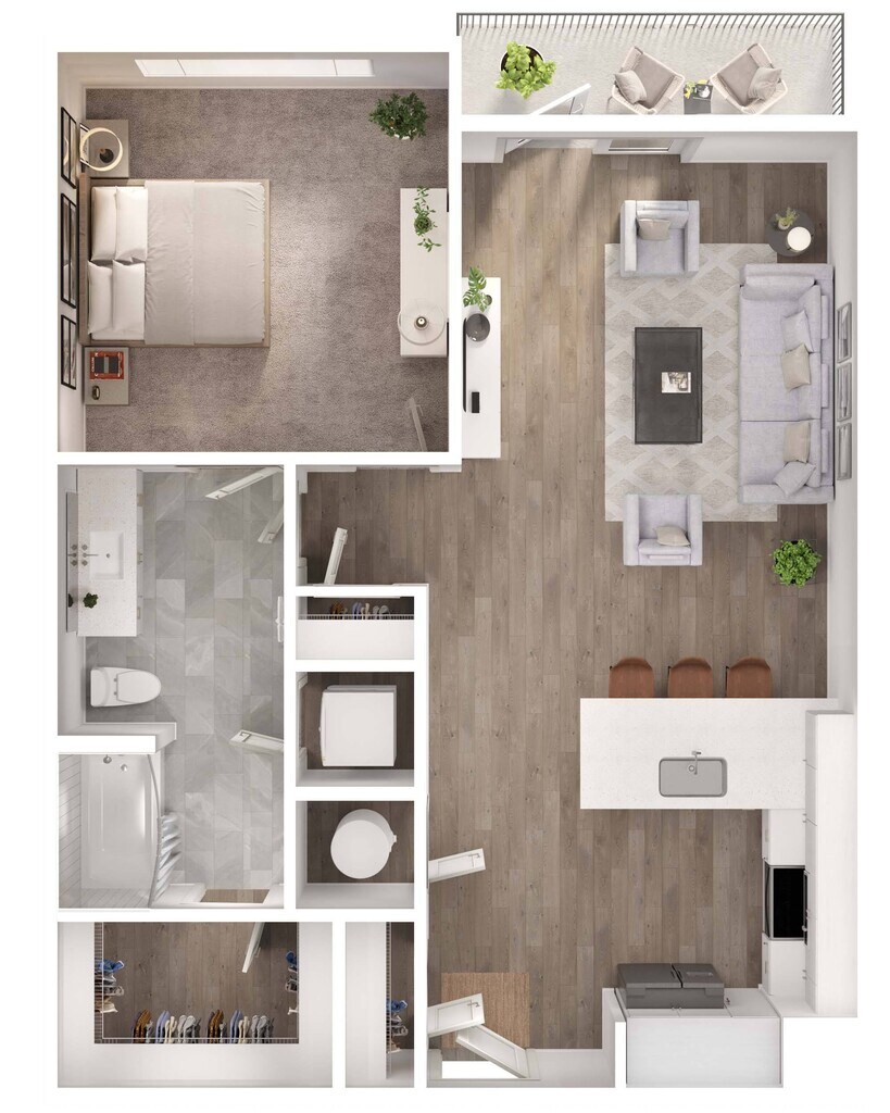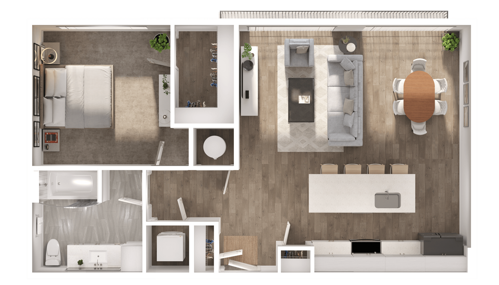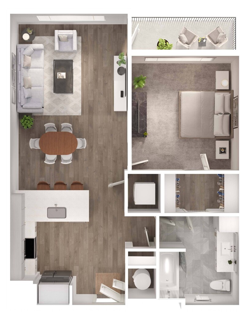 1 Dormitorio, 1 Baño, 811-822 pies²Disponible AhoraGalería del Modelo