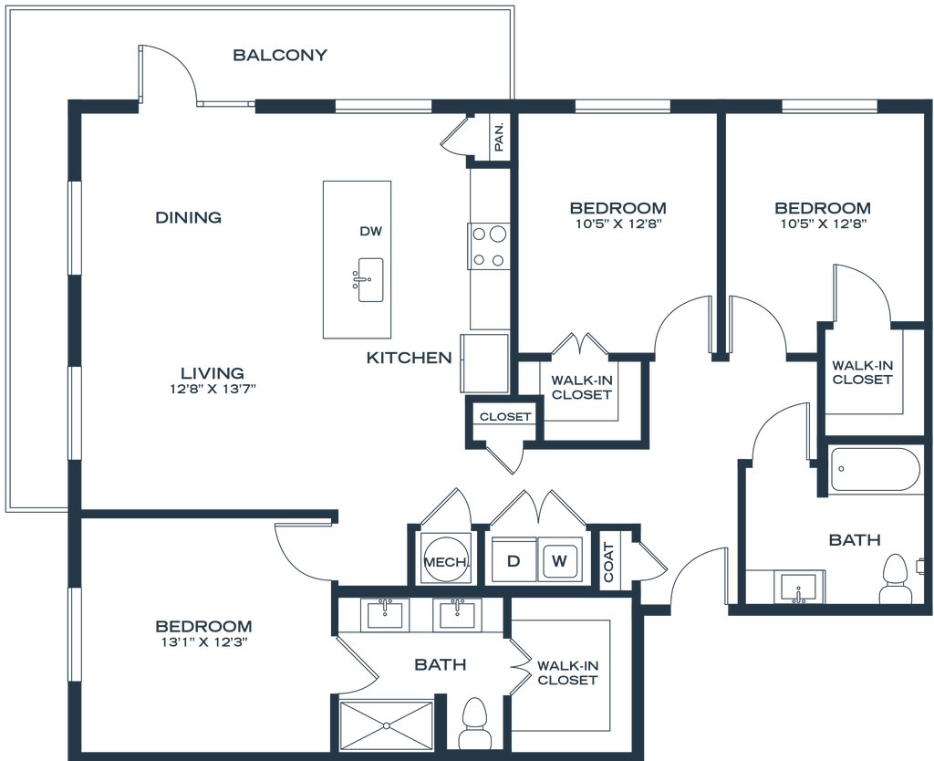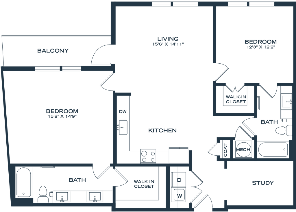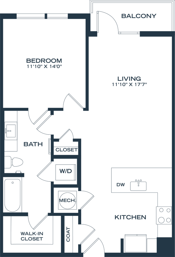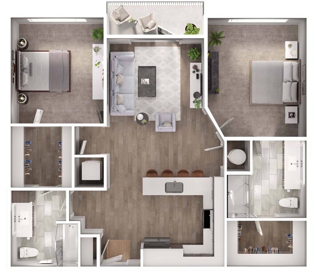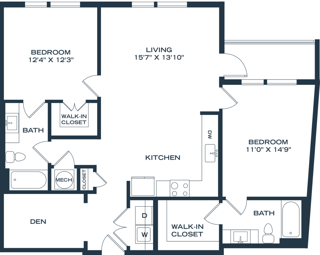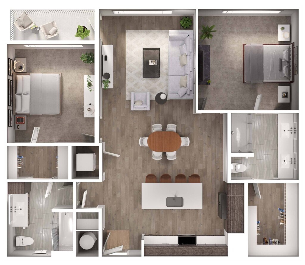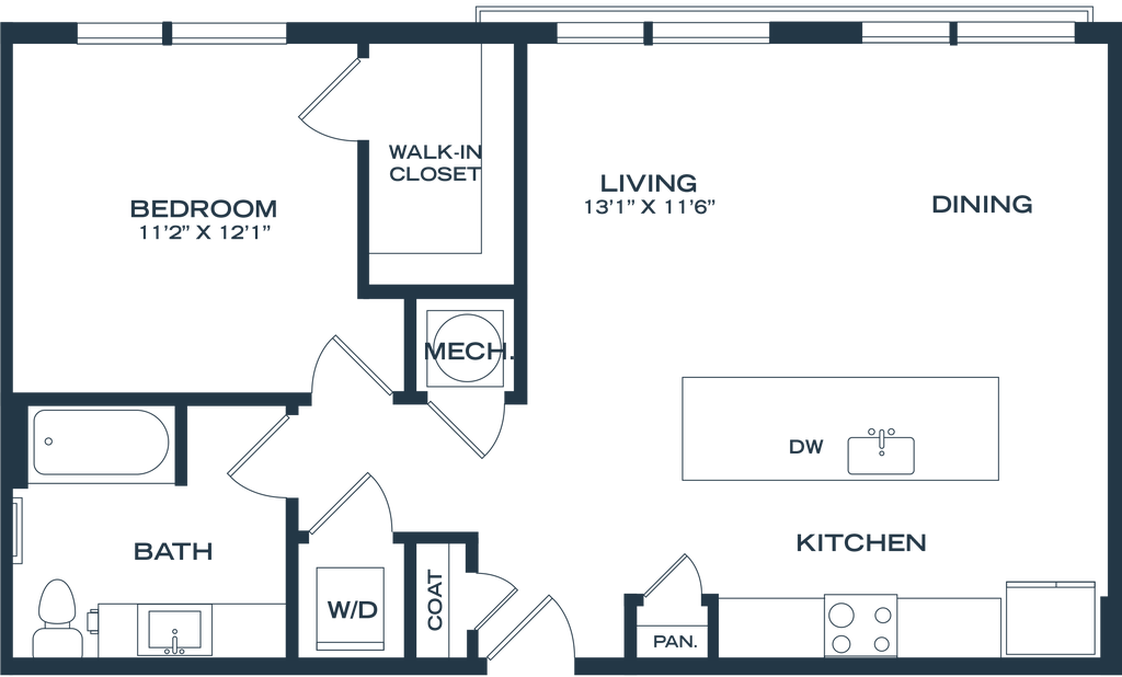 1 Dormitorio, 1 Baño, 811-822 pies²Disponible AhoraGalería del Modelo
