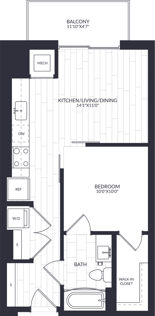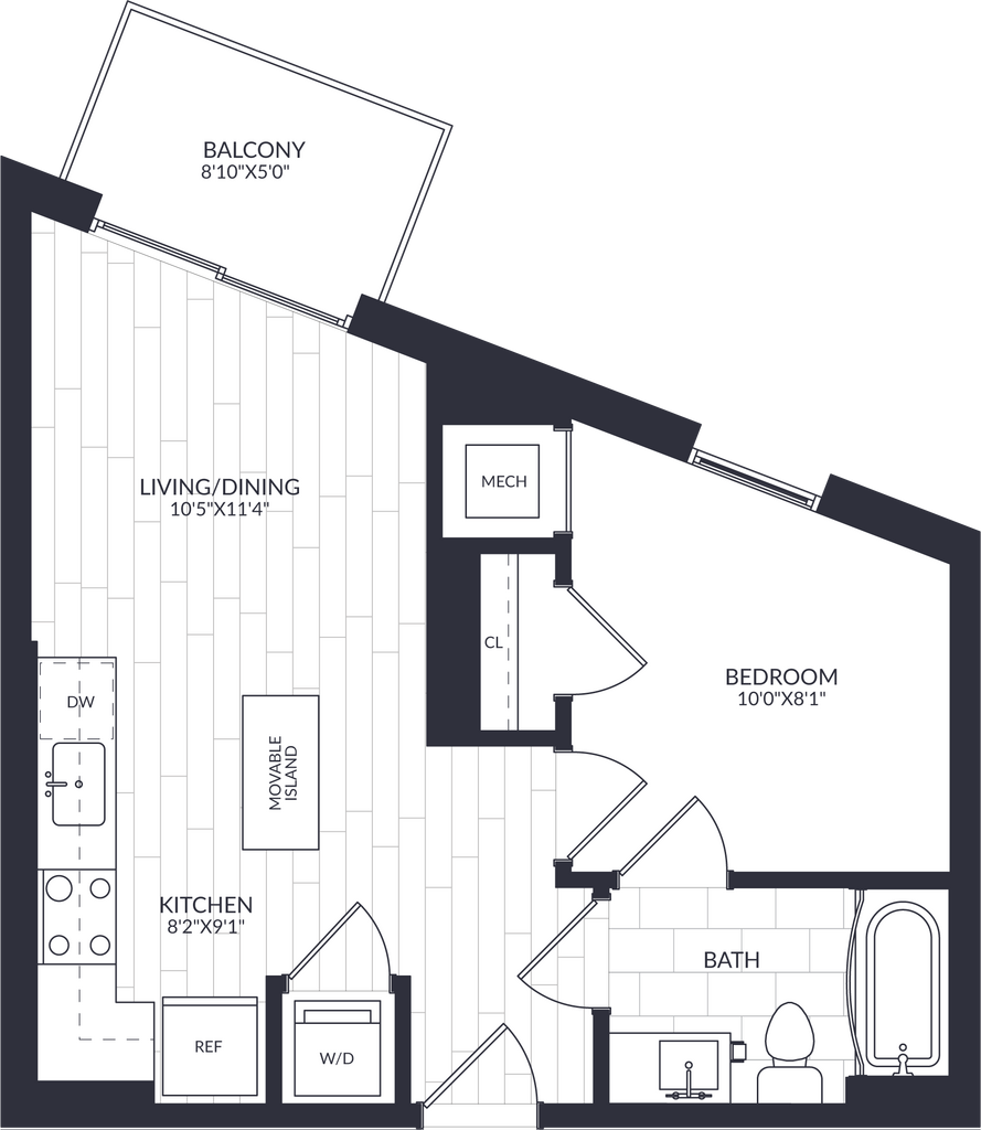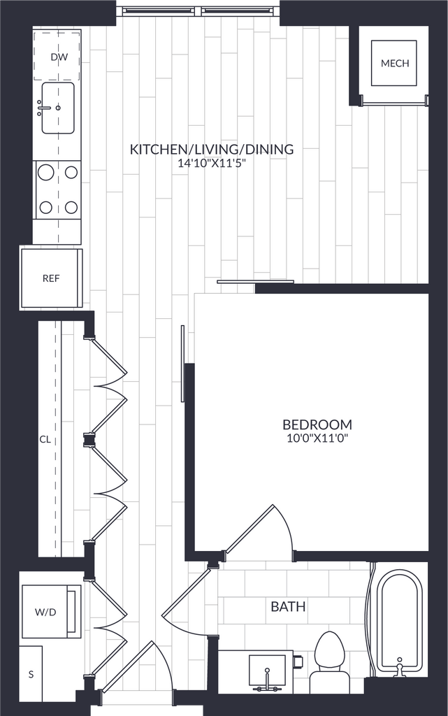 1 Dormitorio, 1 Baño, 529 pies²Disponible AhoraGalería del Modelo