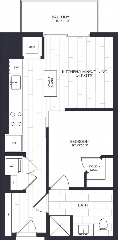 1 Dormitorio, 1 Baño, 510 pies²Precio Mensual TotalDisponible AhoraPrecio Mensual Total