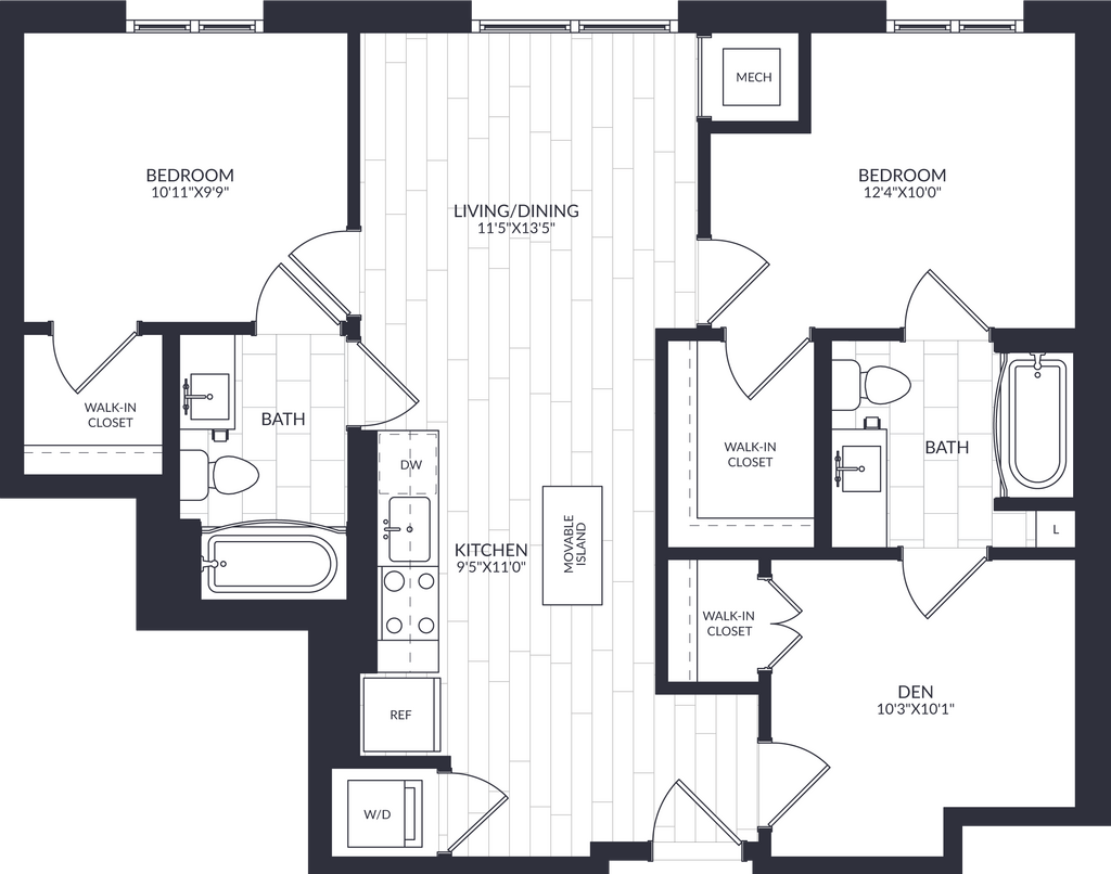 1 Dormitorio, 1 Baño, 515 pies²Precio Mensual TotalDisponible AhoraGalería del Modelo