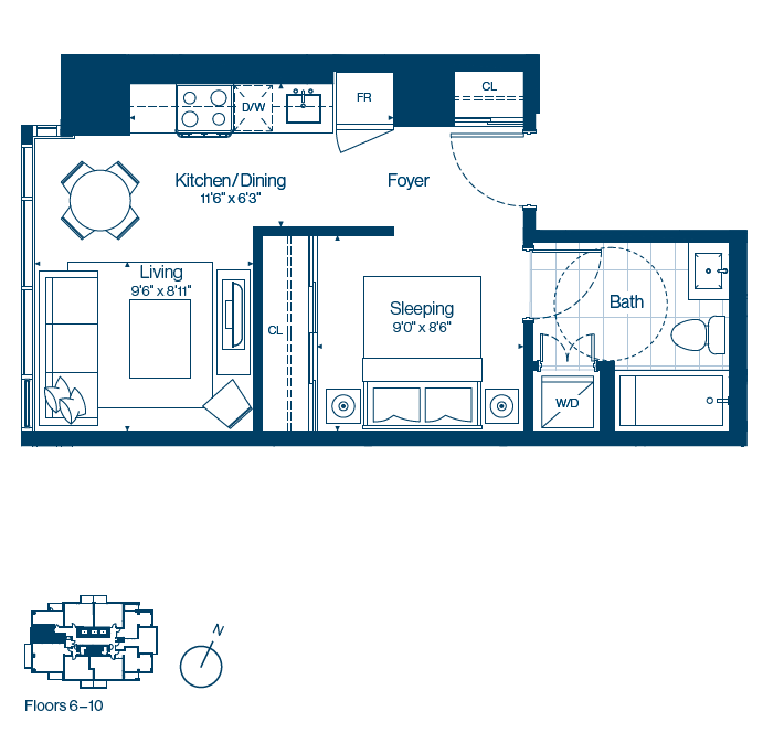 1 Dormitorio, 1 Baño, 571 pies²Disponible January 10, 2026Galería del Modelo