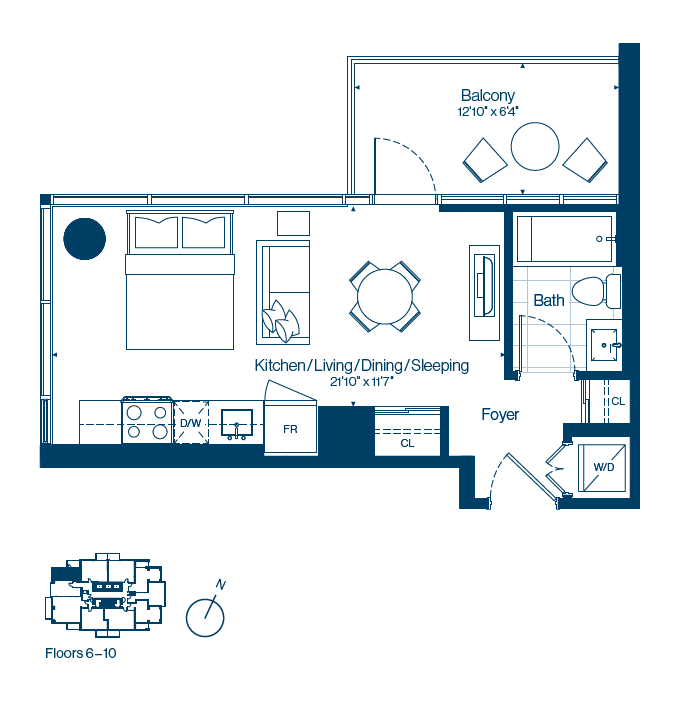 Estudio, 1 Baño, 455 pies²Disponible AhoraGalería del Modelo