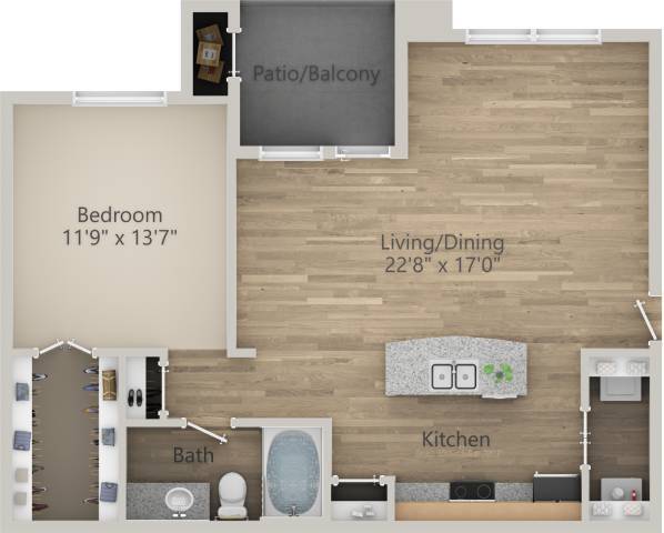 1 Dormitorio, 1 Baño, 663 pies²Disponible AhoraGalería del Modelo