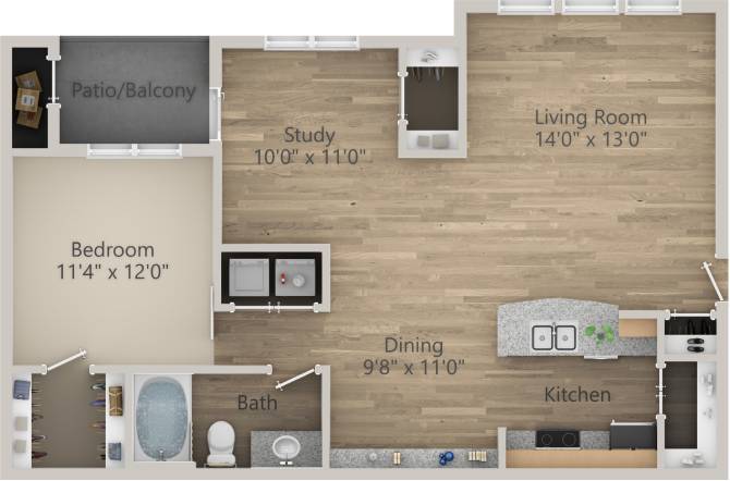 1 Dormitorio, 1 Baño, 784 pies²Disponible AhoraGalería del Modelo