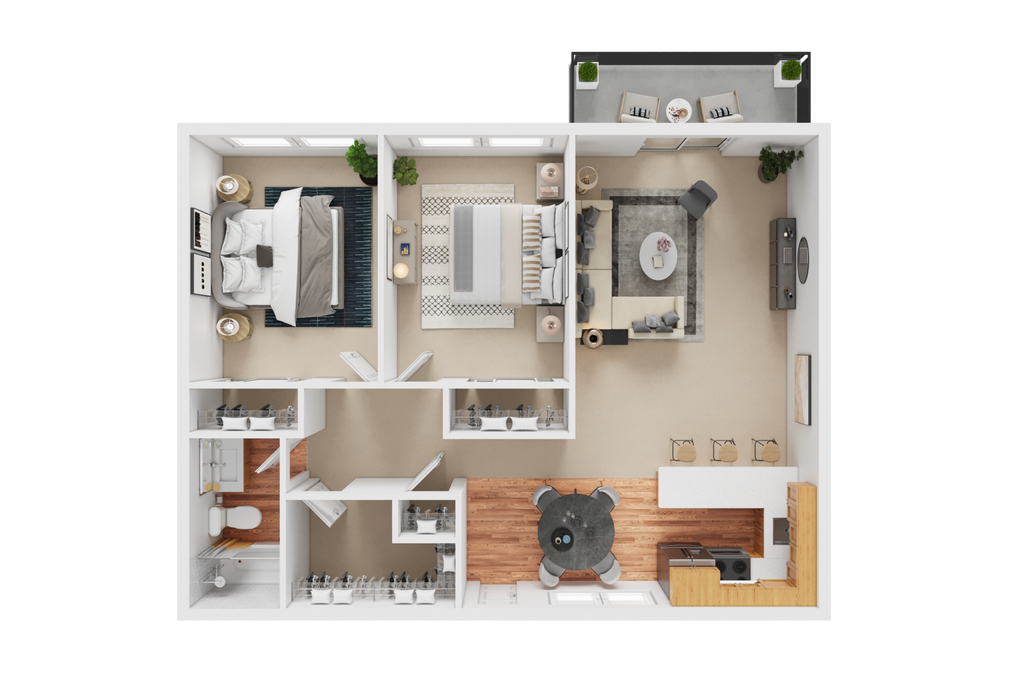 Modelo de apartamento: 2 Bed 1 BathDesde $2,1852 Dormitorios, 1 Baño, 900 sq ftDisponible Ahora![]()