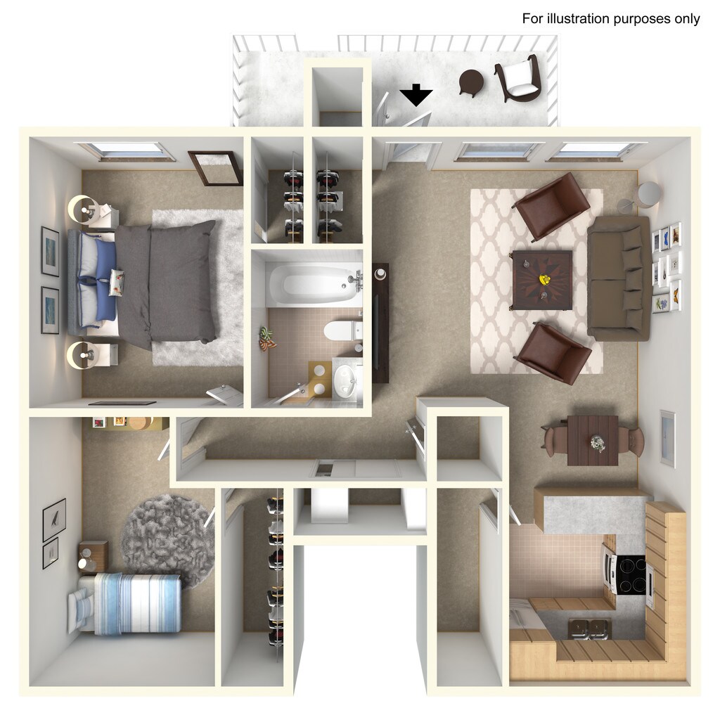 2 Dormitorios, 1 Baño, 738 pies²Disponible AhoraGalería del Modelo