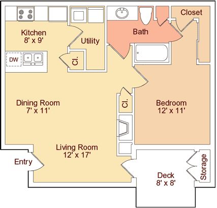 Modelo de apartamento: 1x1 A$1,4001 Dormitorio, 1 Baño, 700 sq ftNo Disponible1x1 A - Plano 1 2 Dormitorios