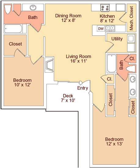 Modelo de apartamento: 2X2 C$1,7752 Dormitorios, 2 Baños, 1098 sq ftNo Disponible2X2 C - Plano 1 3 Dormitorios