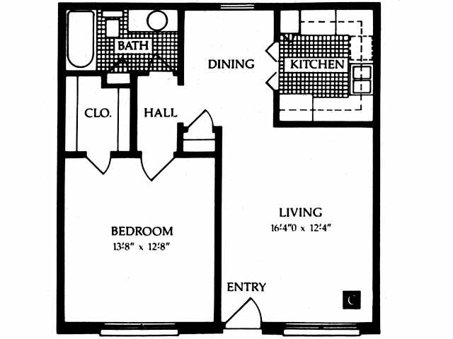 Modelo de apartamento: C 1x11 Dormitorio, 1 Baño, 660 sq ftNo Disponible![]()