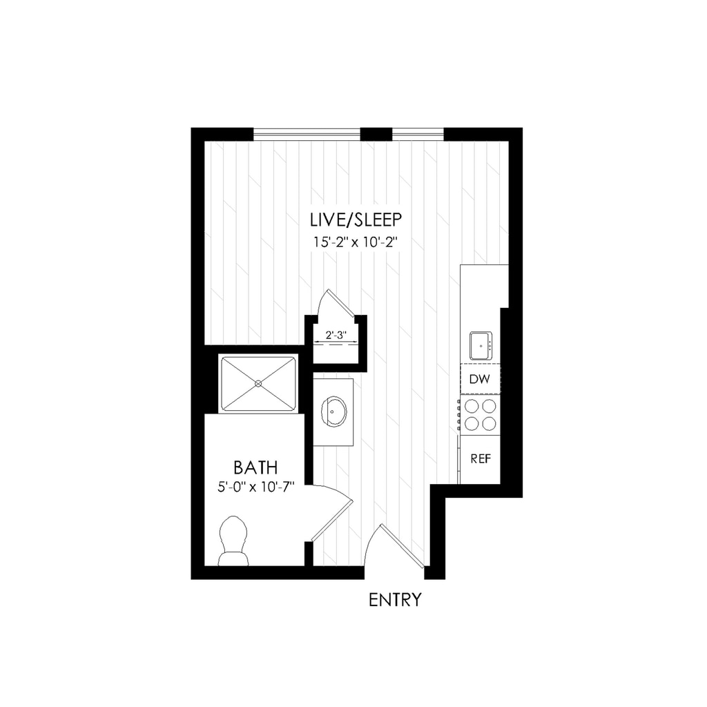 Modelo de apartamento: Studio - Large 585 sqftDesde $1,558Estudio, 1 Baño, 585 sq ftDisponible AhoraLos planos son representaciones artísticas. Todas las dimensiones son aproximadas. El producto y las especificaciones reales pueden variar en tamaño o detalle. No todas las características están disponibles en cada vivienda en alquiler. Por favor, consulta con un representante para obtener más detalles.