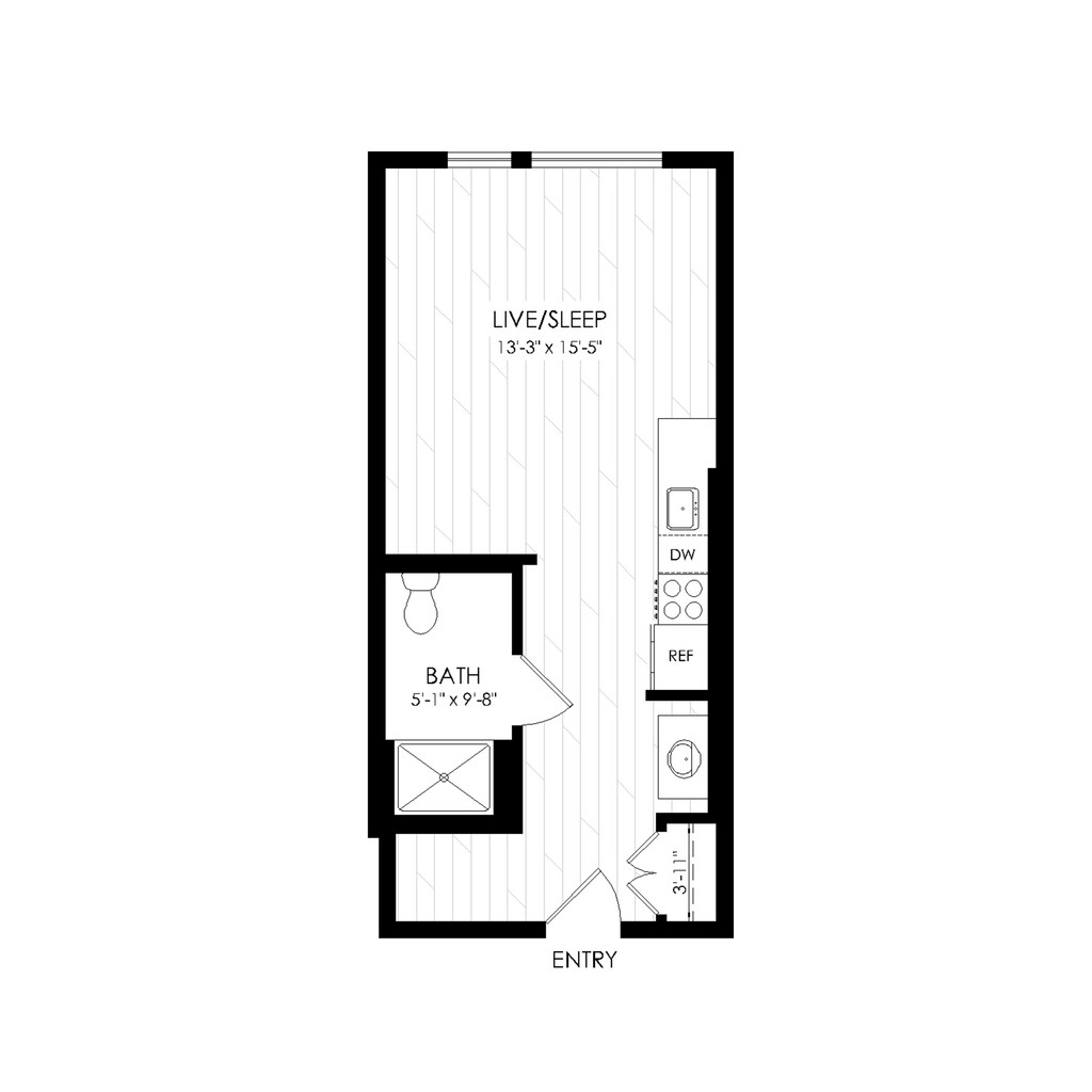 Studio - Regular 395 sqft - Plano 1 Unidad de apartamento: 309Modelo de apartamento: Studio - Regular 395 sqft$1,103Estudio, 1 Baño, 395 sq ftDisponible March 29, 2026Studio - Regular 430 sqft