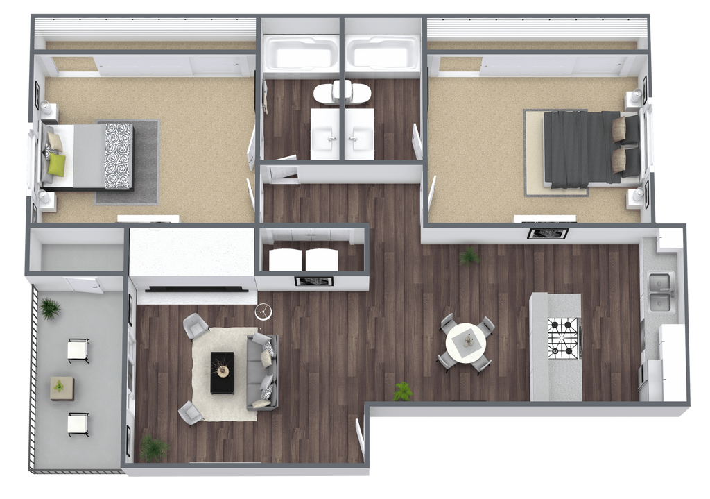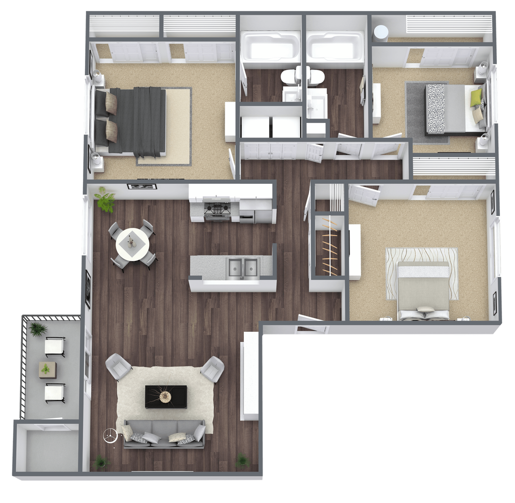 Modelo de apartamento: B3Desde $1,9652 Dormitorios, 2 Baños, 1030 sq ftDisponible Ahora![]()