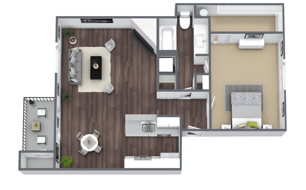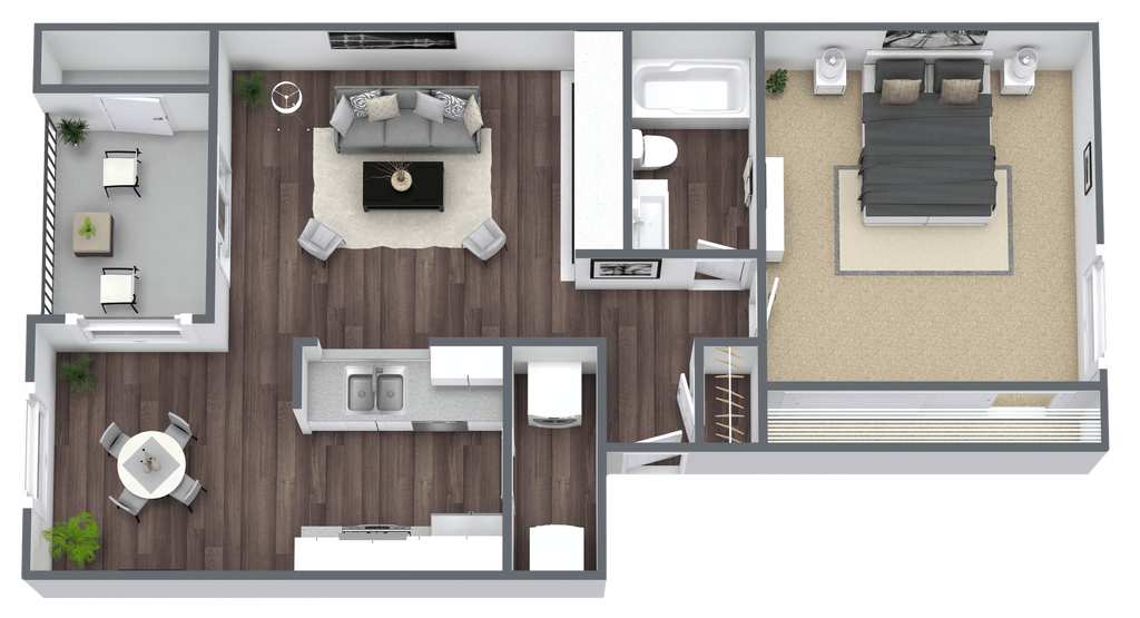 1 Dormitorio, 1 Baño, 736 pies²Disponible AhoraGalería del Modelo