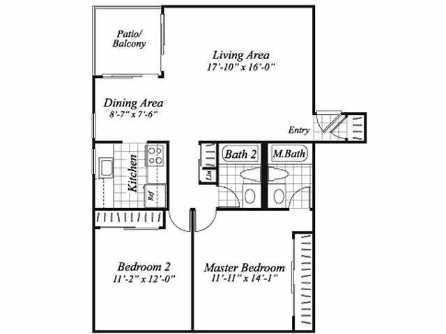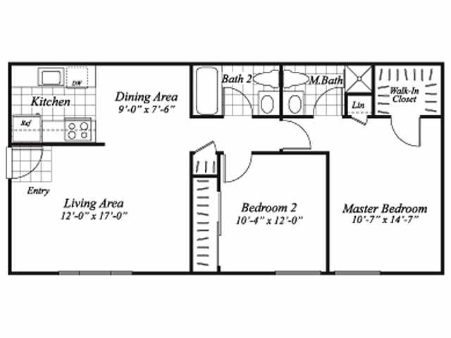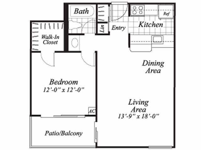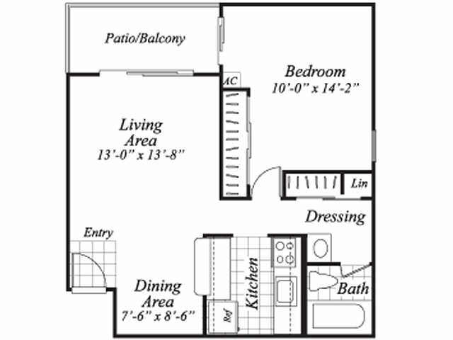 Modelo de apartamento: A1Desde $9991 Dormitorio, 1 Baño, 640 sq ftDisponible Ahora![]()
