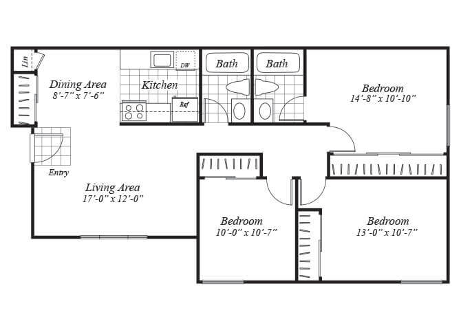 Modelo de apartamento: C1Desde $1,4993 Dormitorios, 2 Baños, 1037 sq ftDisponible Ahora![]()