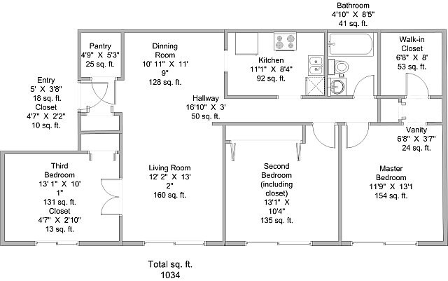 3 Beds, 1 bath - Plano 1