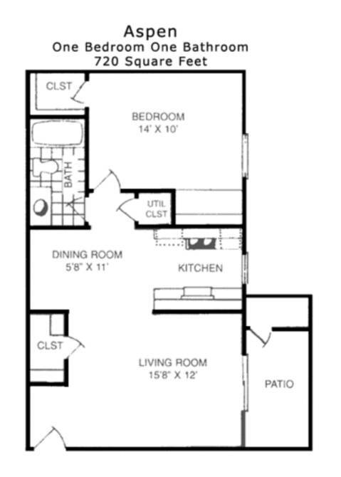 Modelo de apartamento: AspenDesde $9691 Dormitorio, 1 Baño, 720 sq ftDisponible AhoraLos planos son representaciones artísticas. Todas las dimensiones son aproximadas. El producto y las especificaciones reales pueden variar en tamaño o detalle. No todas las características están disponibles en cada vivienda en alquiler. Por favor, consulta con un representante para obtener más detalles.