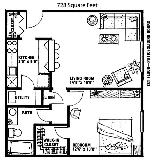 1 Dormitorio, 1 Baño, 728-730 pies²Detalles de Diponibilidad