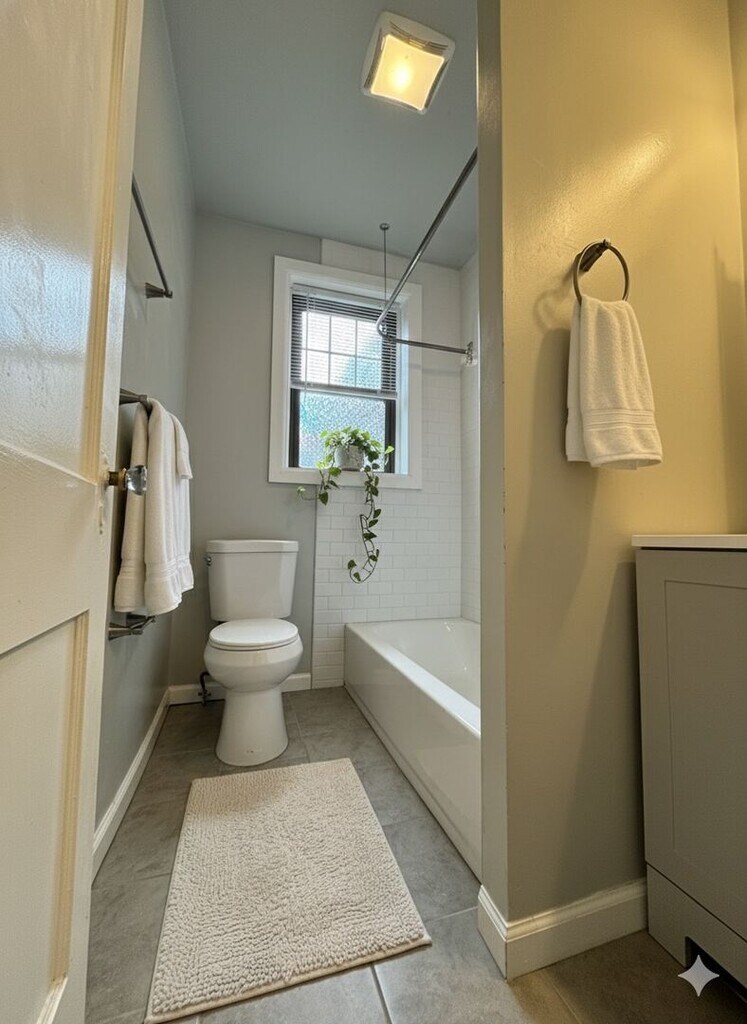 - Baño con azulejos personalizados con nuevos accesorios blancos impecables; gabinetes de cierre suave con protector contra salpicaduras de azulejos personalizados