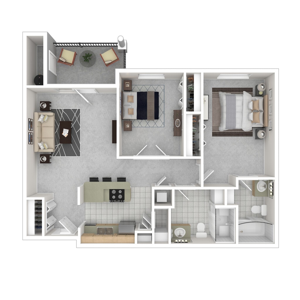 2 Dormitorios, 2 Baños, 859 pies²Disponible AhoraGalería del Modelo