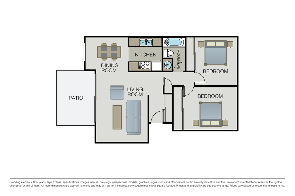 2 Dormitorios, 1 Baño, 870 pies²Disponible AhoraGalería del Modelo