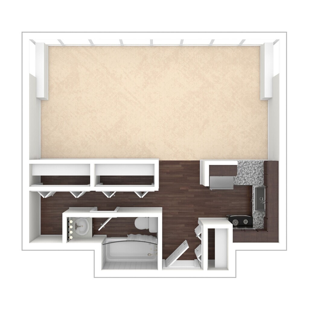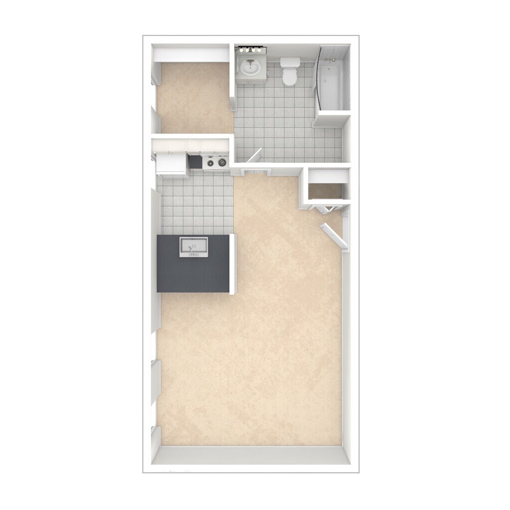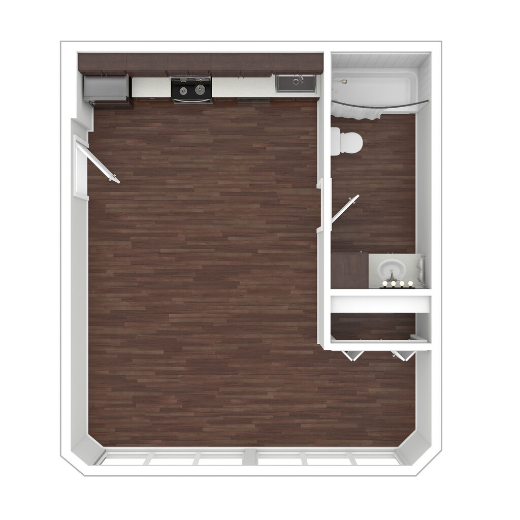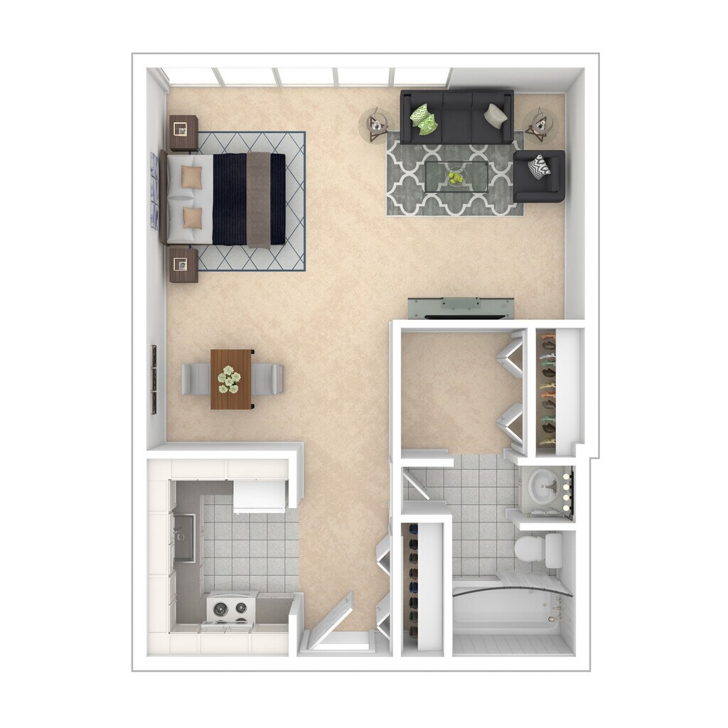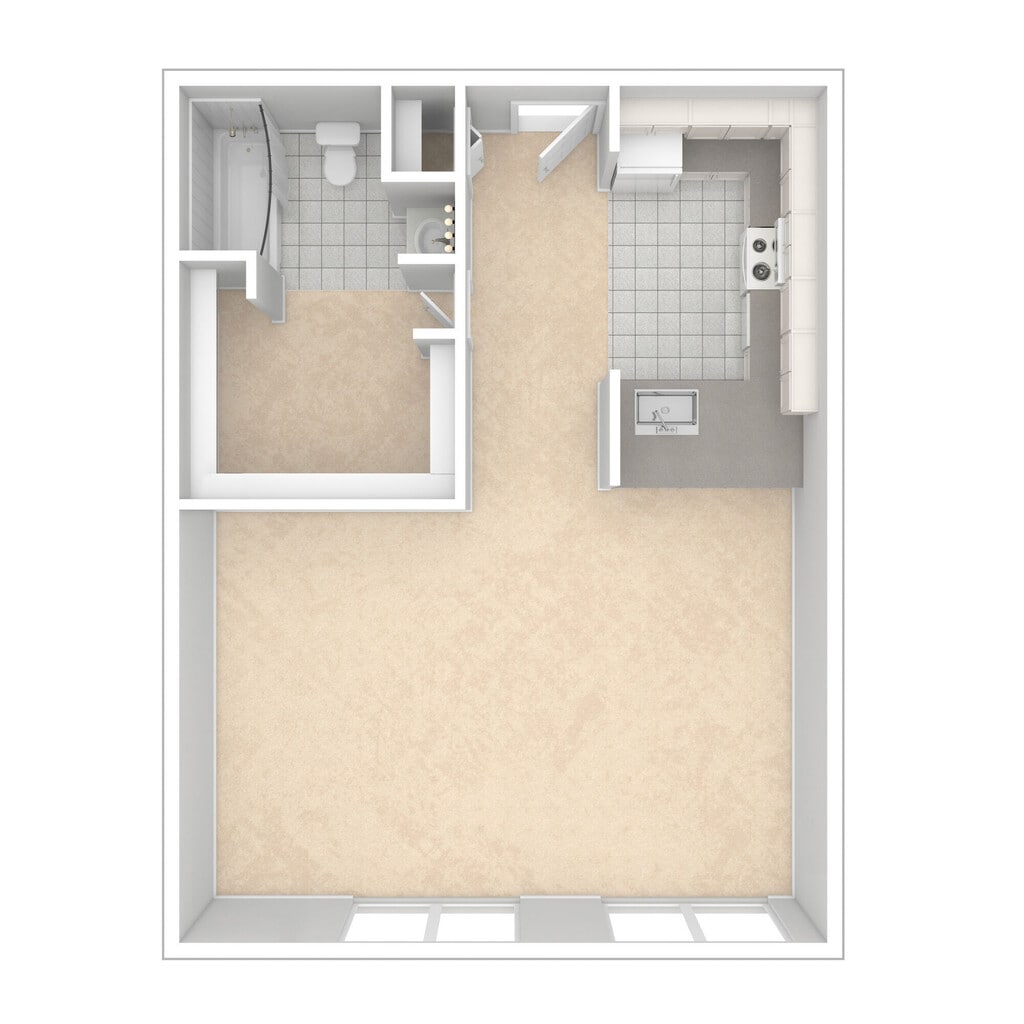 Modelo de apartamento: Studio - 411Desde $1,108Estudio, 1 Baño, 411 sq ftDisponible Ahora![]()
