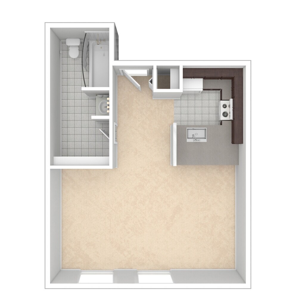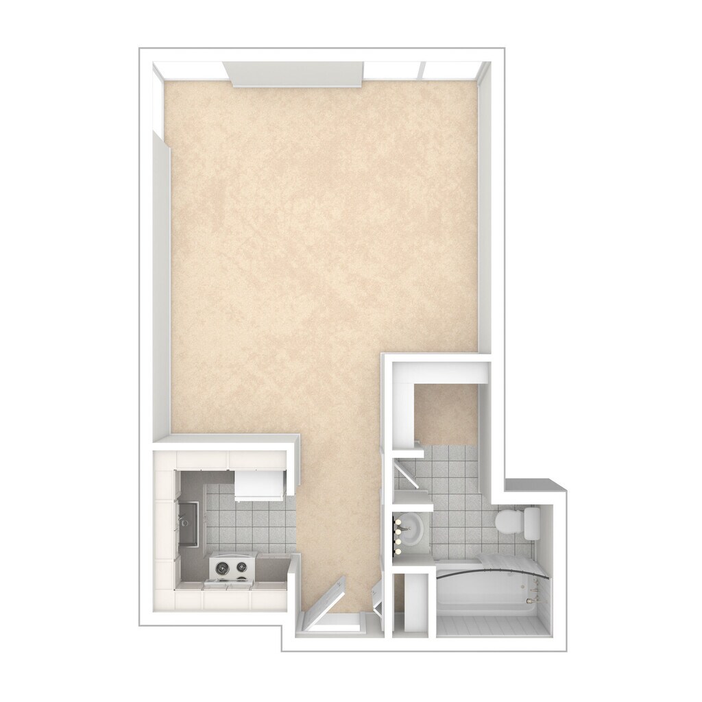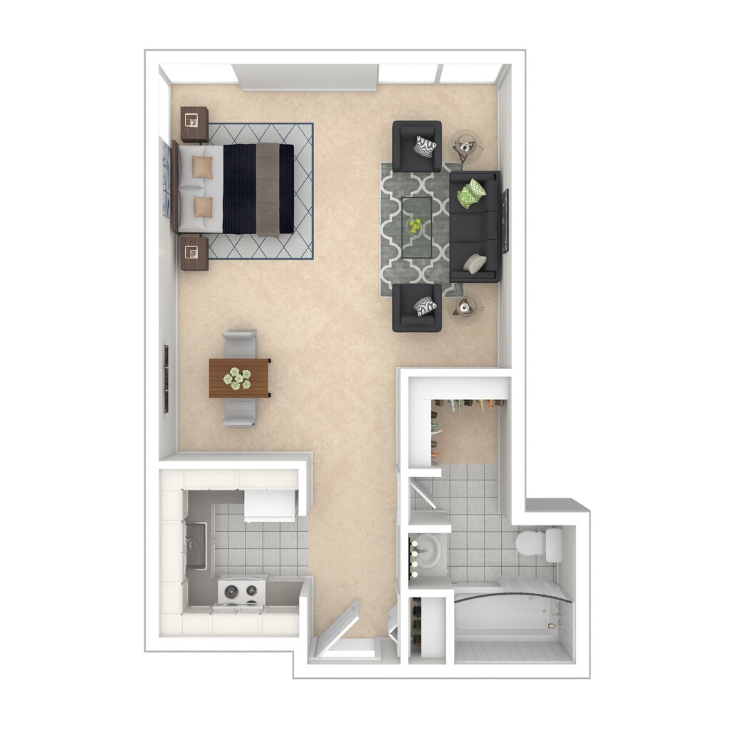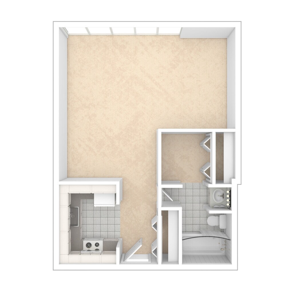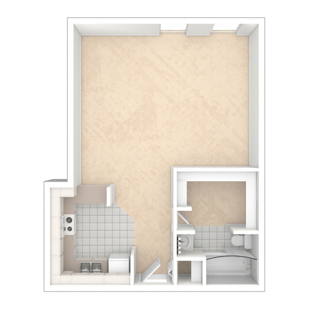 Modelo de apartamento: Studio - 411Desde $1,108Estudio, 1 Baño, 411 sq ftDisponible Ahora![]()