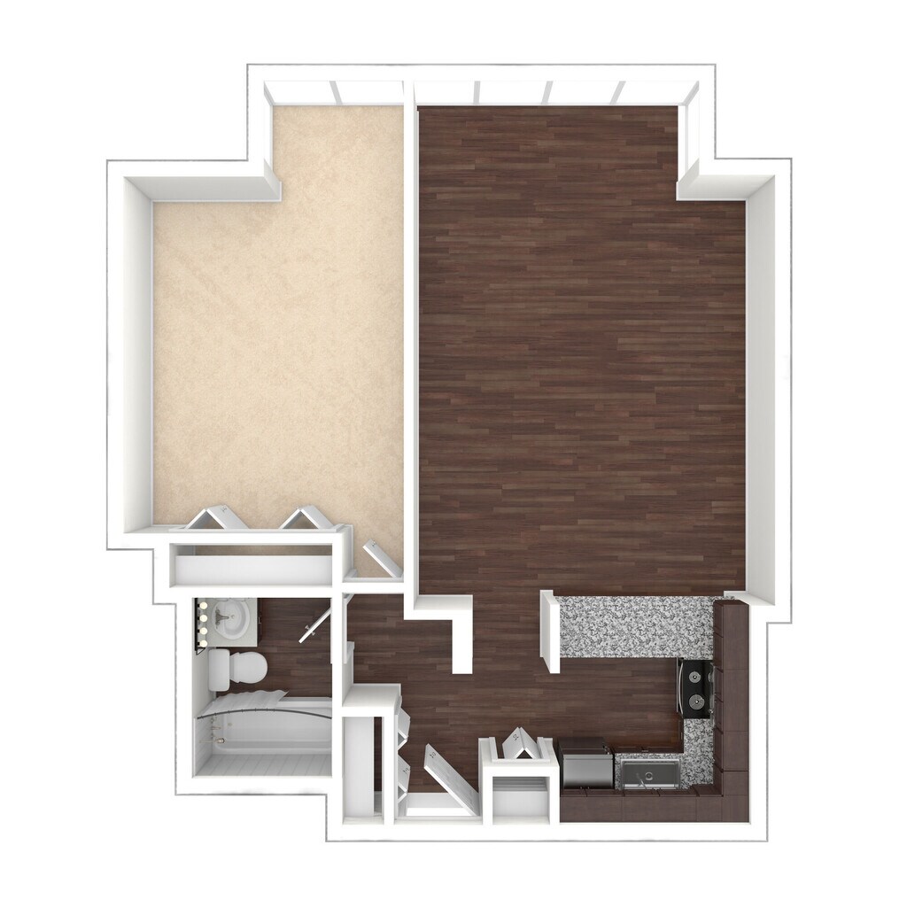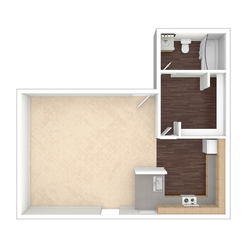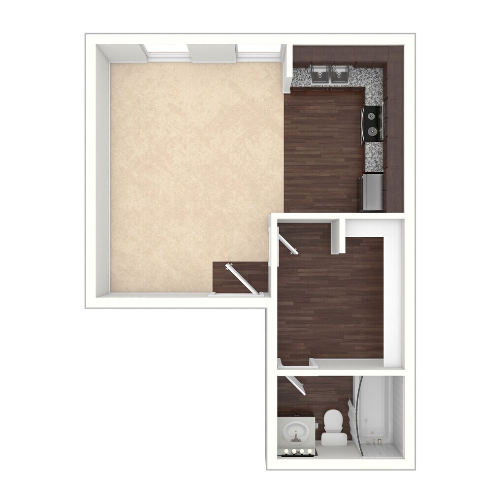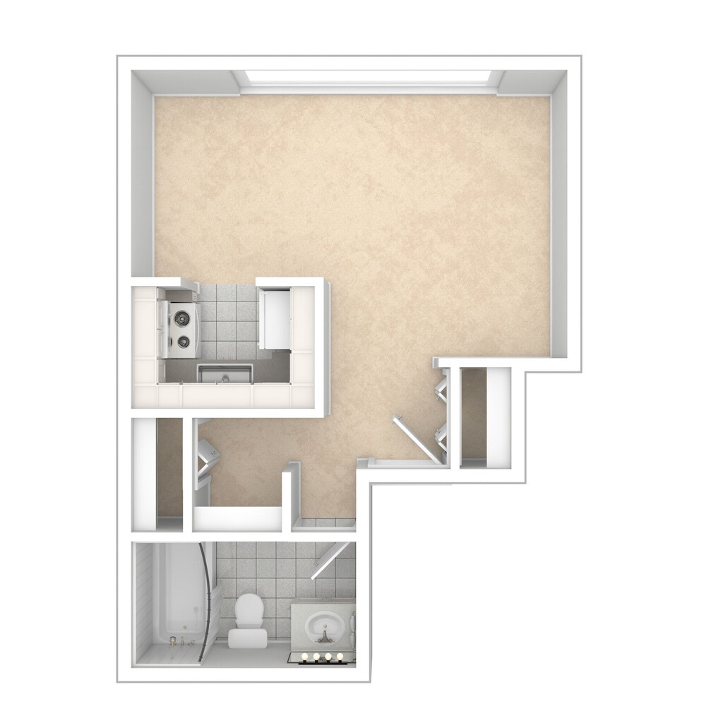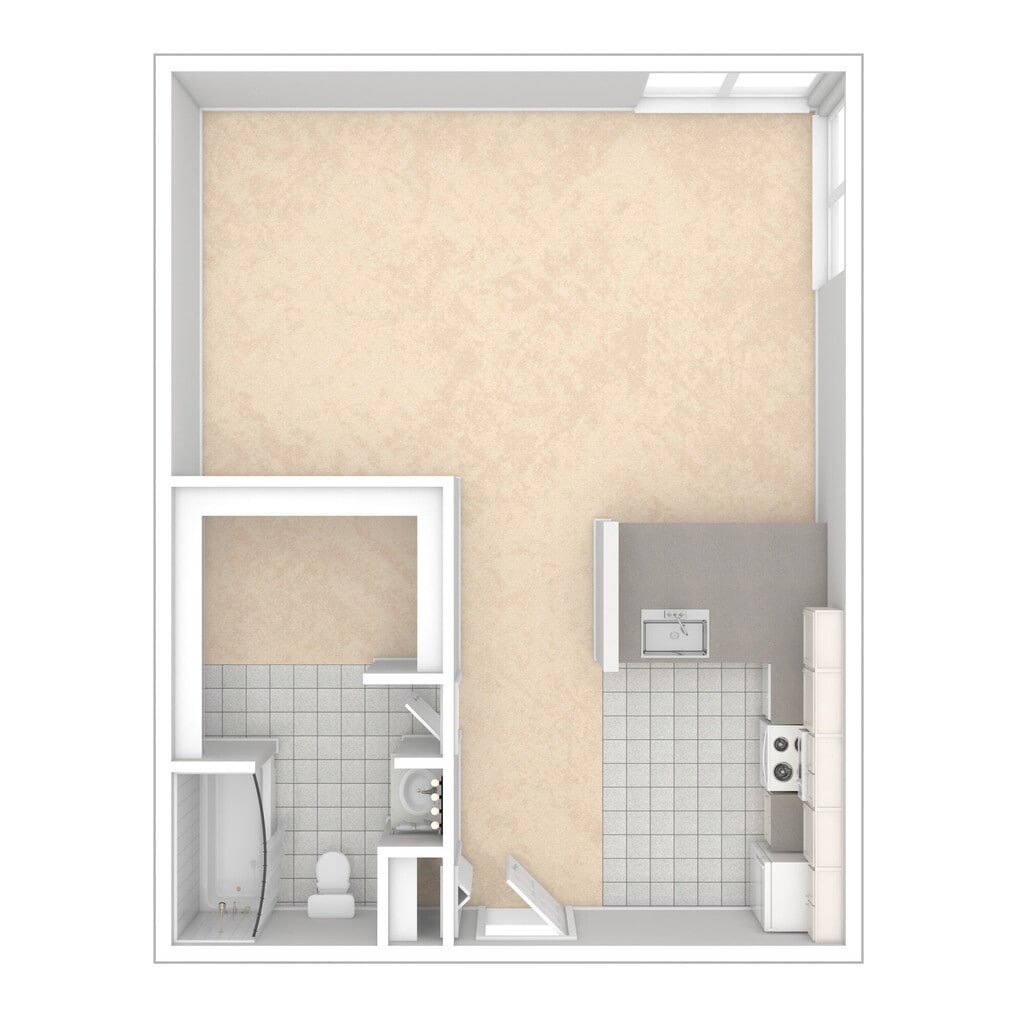 Modelo de apartamento: Studio - 411Desde $1,108Estudio, 1 Baño, 411 sq ftDisponible Ahora![]()