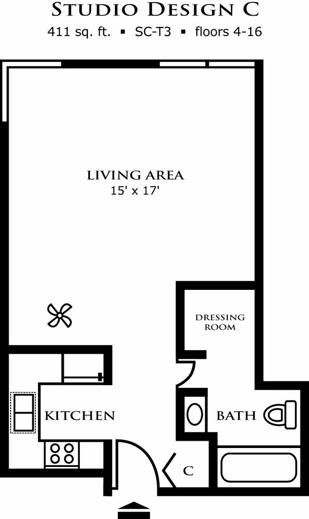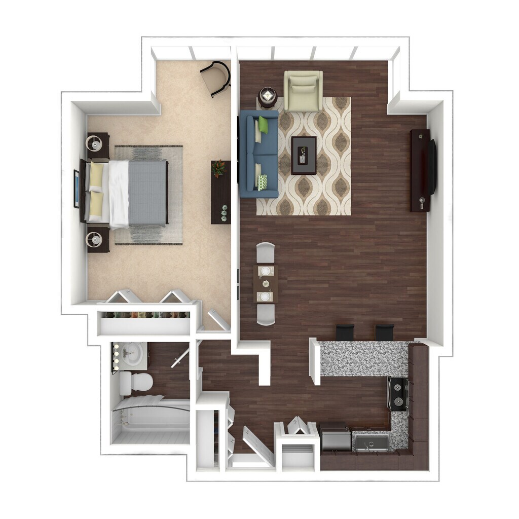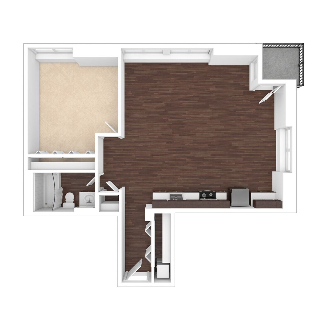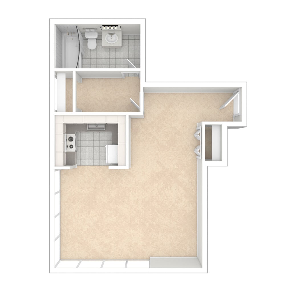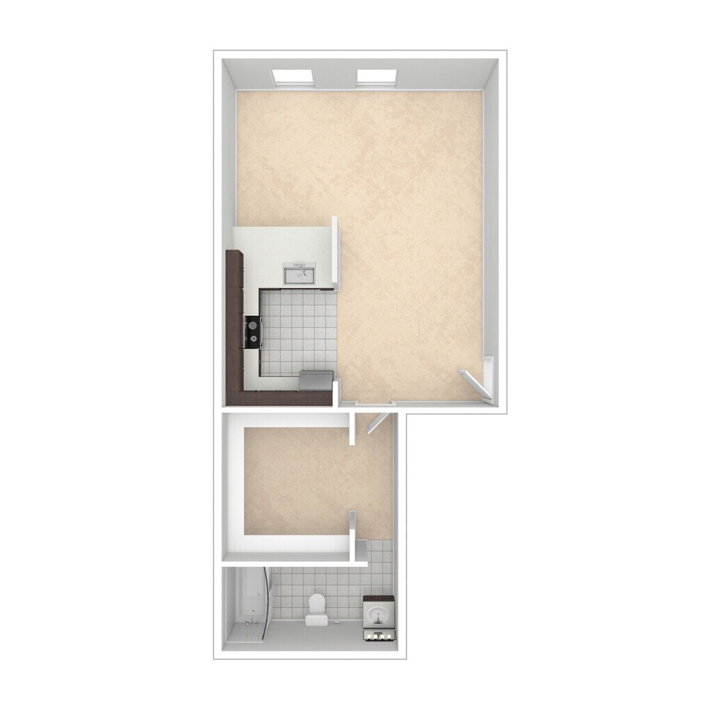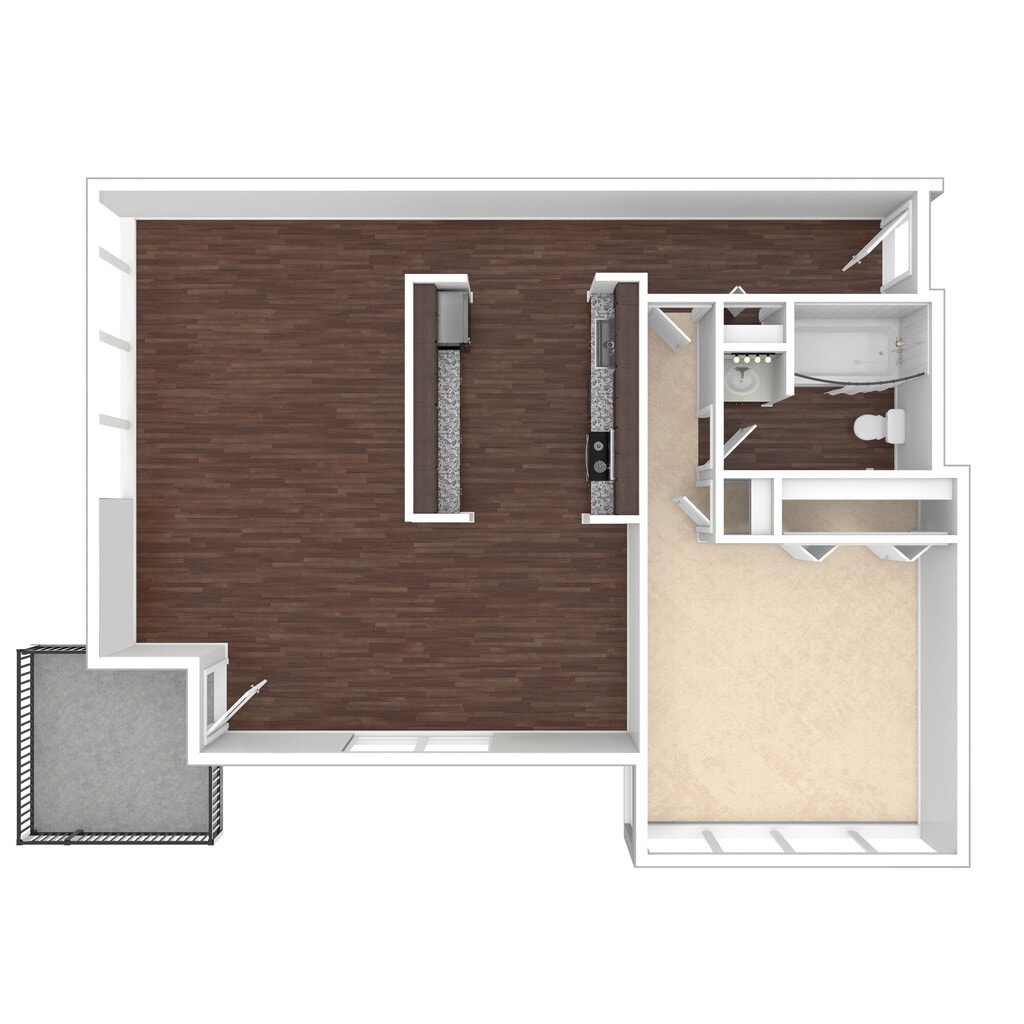 Modelo de apartamento: Studio - 411Desde $1,108Estudio, 1 Baño, 411 sq ftDisponible Ahora![]()