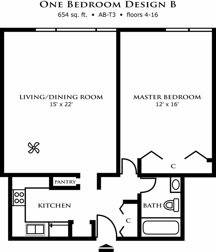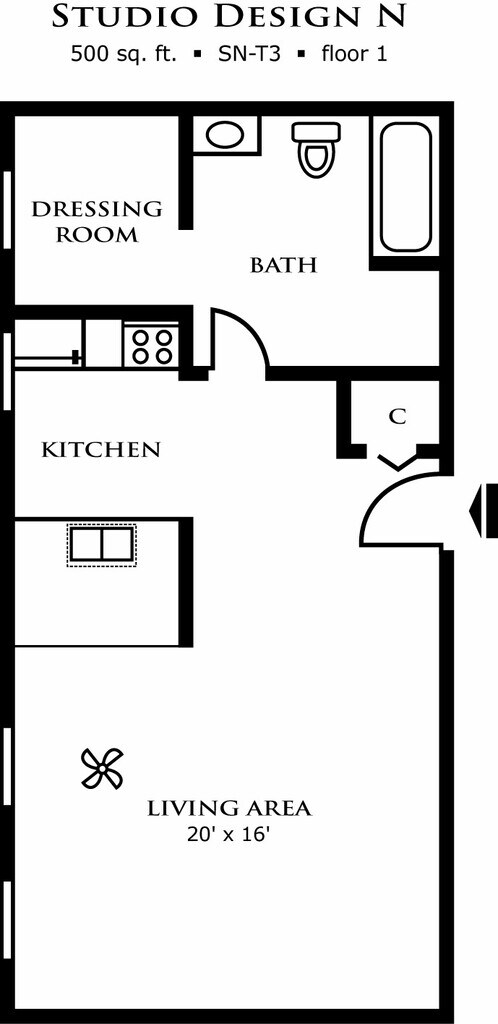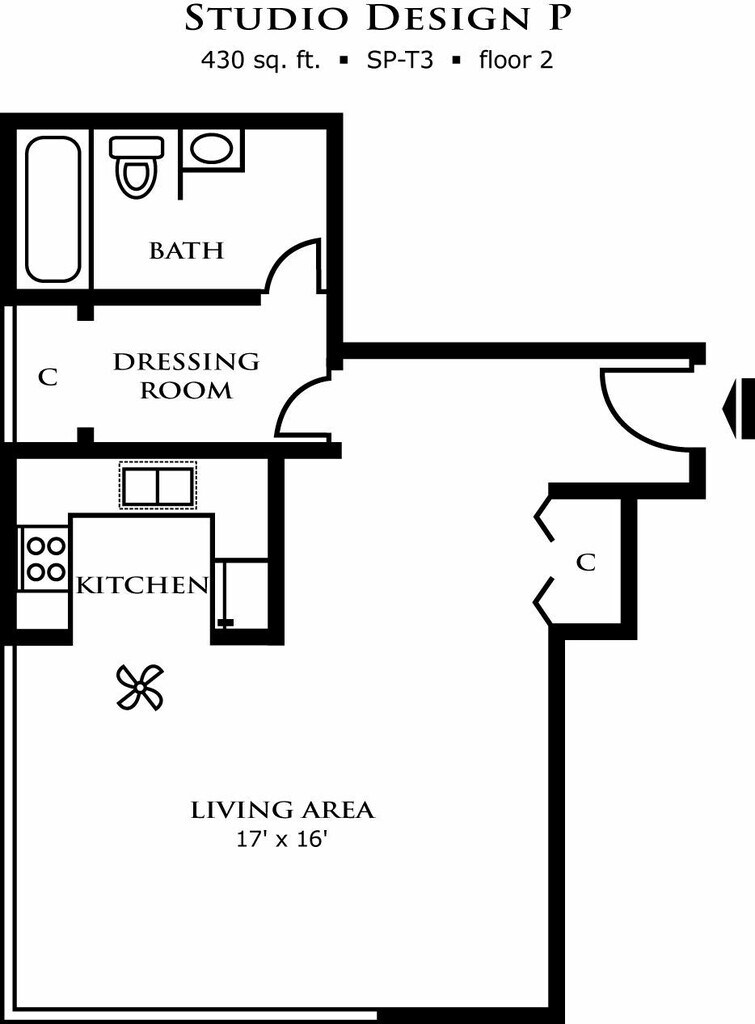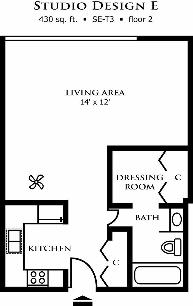 Estudio, 1 Baño, 426-500 pies²Galería del Modelo