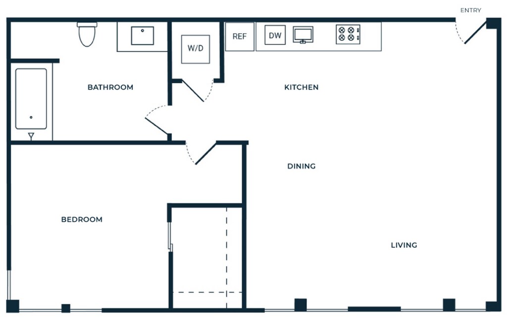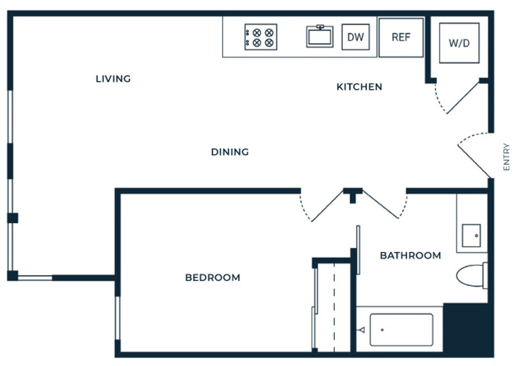 Estudio, 1 Baño, 612 pies²Disponible AhoraGalería del Modelo