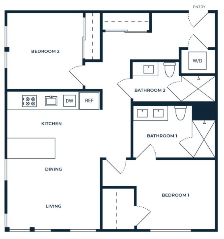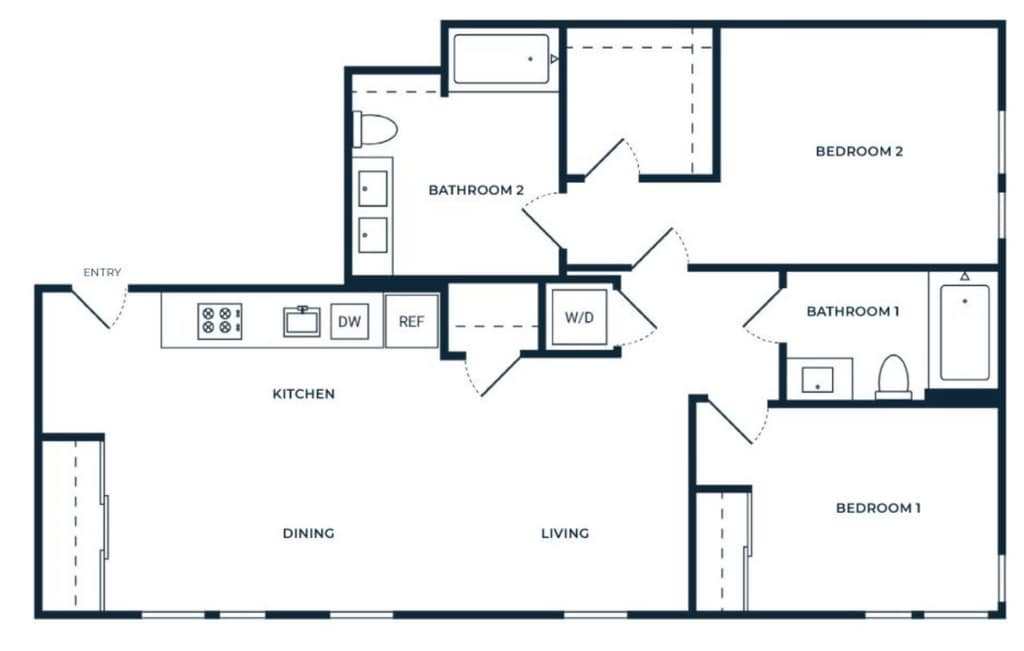 Modelo de apartamento: a12Desde $3,5861 Dormitorio, 1 Baño, 826 sq ftDisponible Ahora![]()