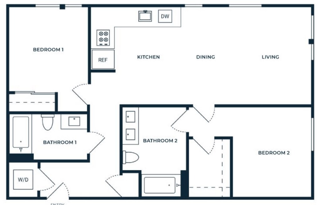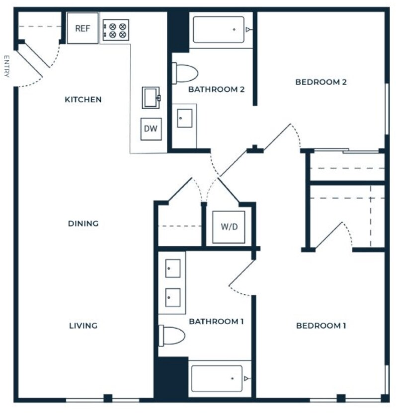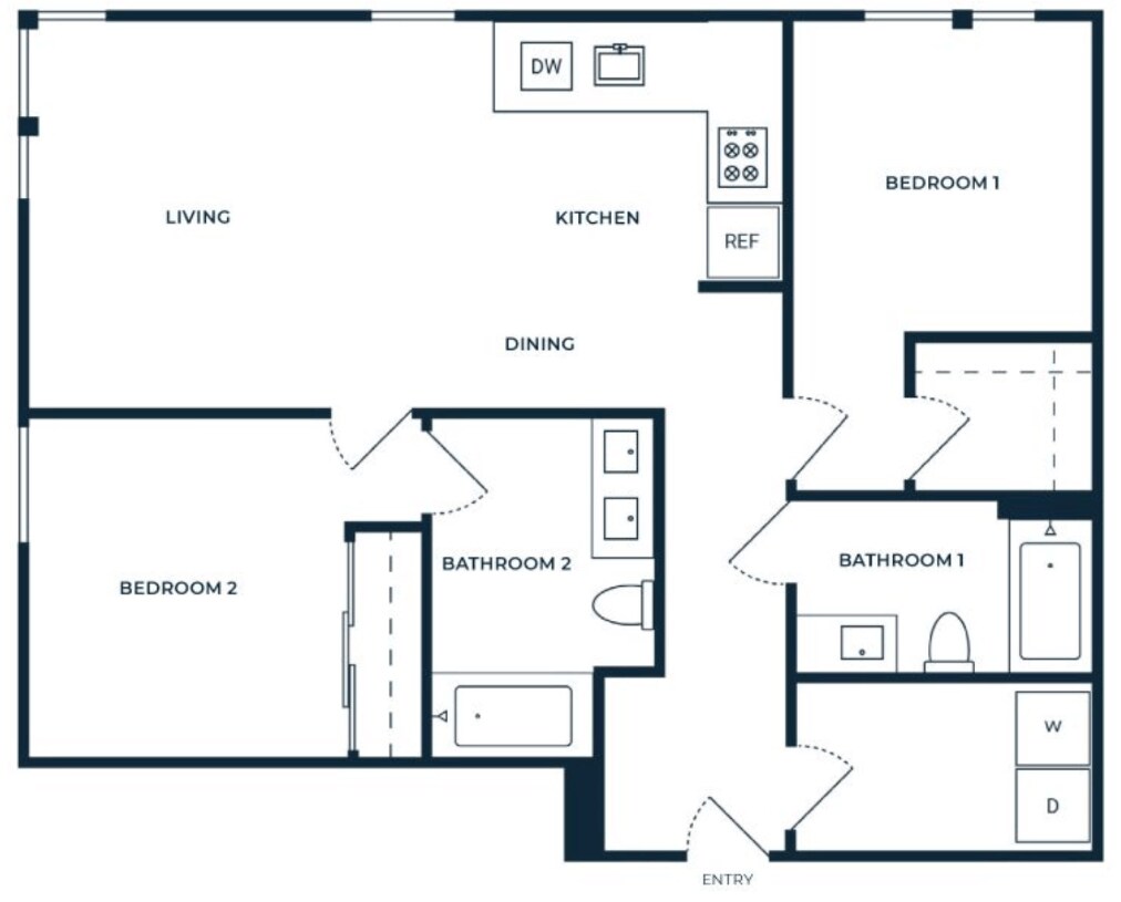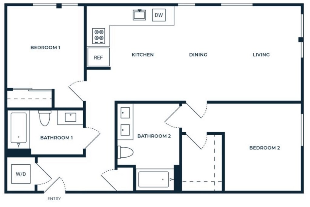 1 Dormitorio, 1 Baño, 826 pies²Disponible AhoraGalería del Modelo