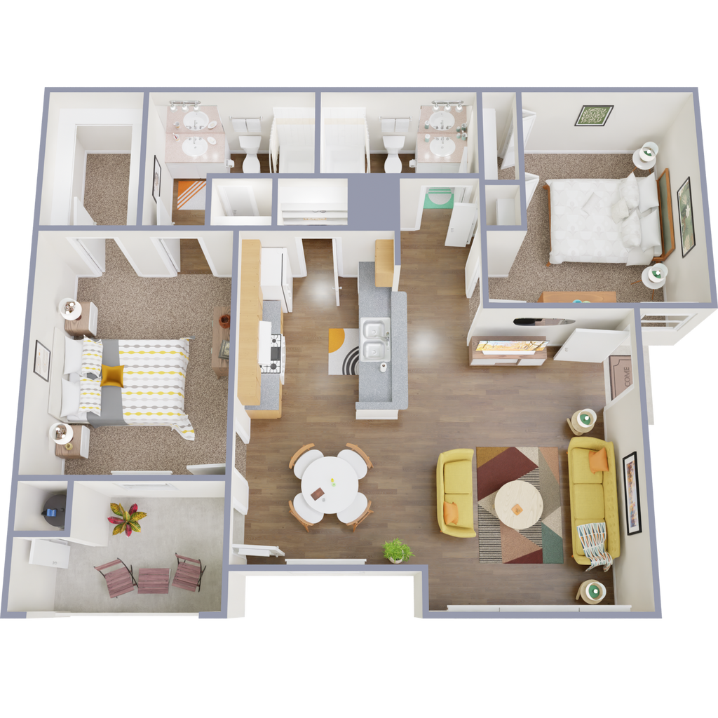 Modelo de apartamento: Two BedroomDesde $8732 Dormitorios, 2 Baños, 901 sq ftDisponible Ahora![]()