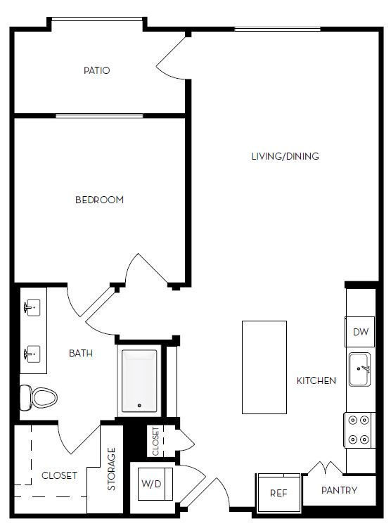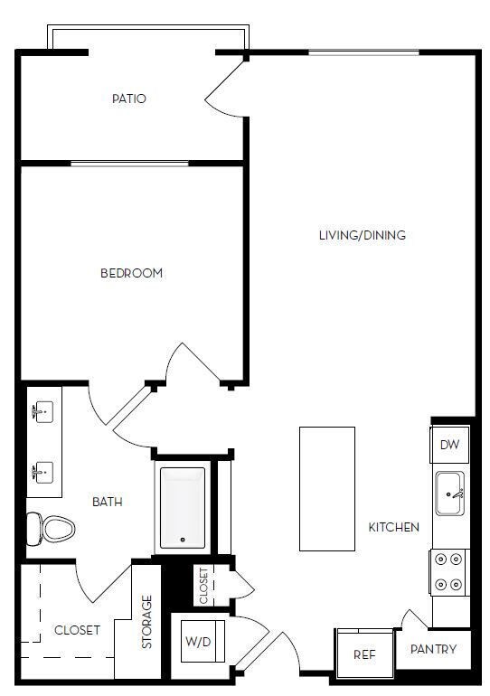 Estudio, 1 Baño, 631 pies²El más grandeEsta opción tiene las unidades más grandes para este modeloGalería del Modelo