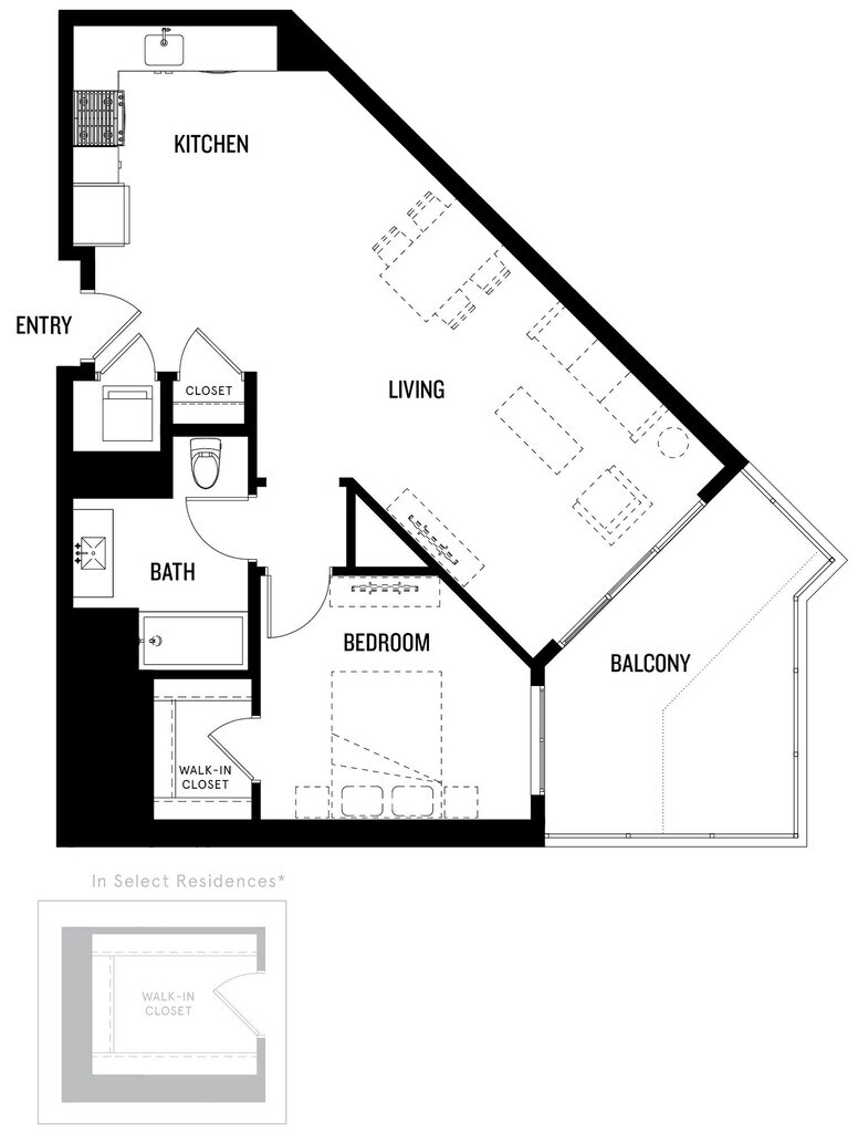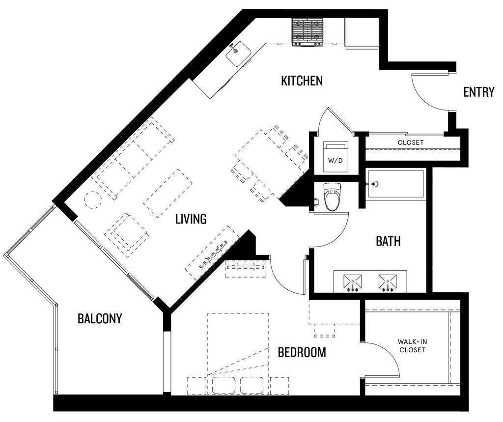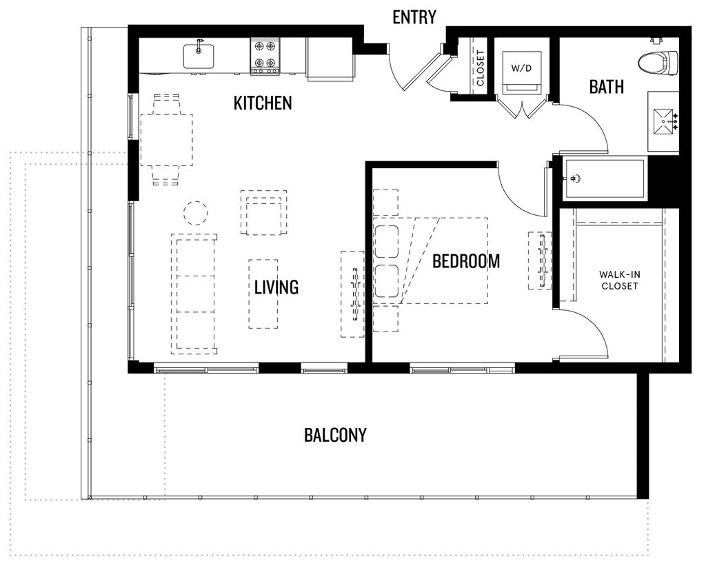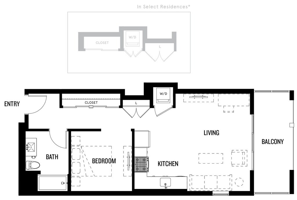Estudio, 1 Baño, 915 pies²El más grandeEsta opción tiene las unidades más grandes para este modeloGalería del Modelo