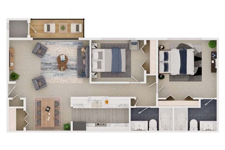 2 Dormitorios, 2 Baños, 960 pies²Galería del Modelo