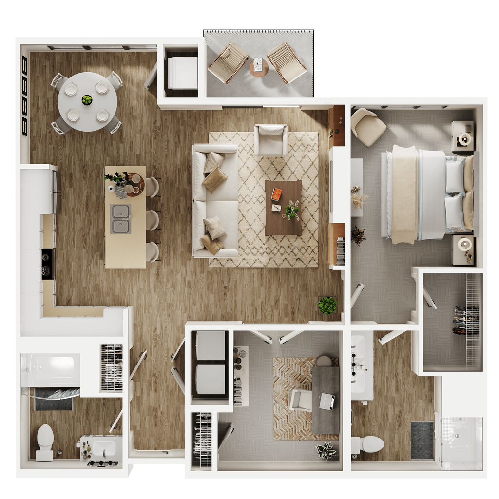 Modelo de apartamento: BalsamDesde $1,8251 Dormitorio, 1 Baño, 840 sq ftDisponible AhoraLos planos son representaciones artísticas. Todas las dimensiones son aproximadas. El producto y las especificaciones reales pueden variar en tamaño o detalle. No todas las características están disponibles en cada vivienda en alquiler. Por favor, consulta con un representante para obtener más detalles.