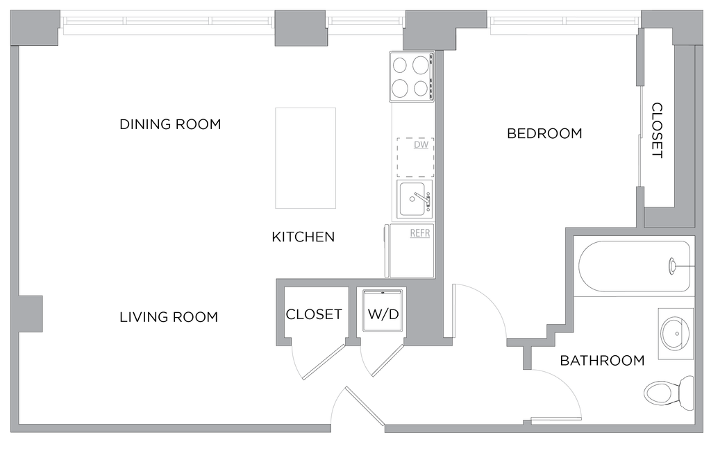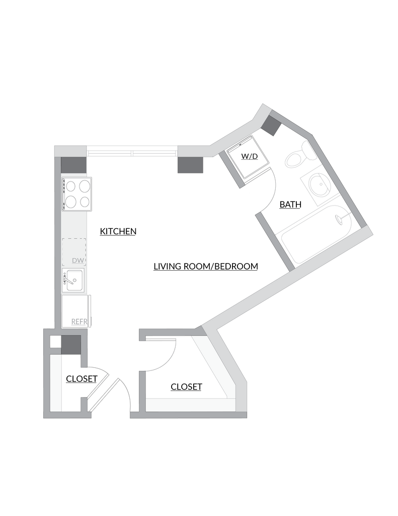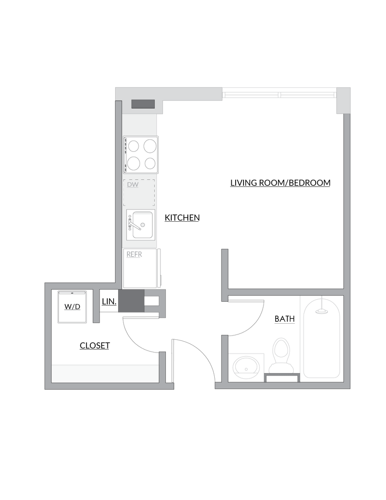 Estudio, 1 Baño, 400 pies²Disponible AhoraGalería del Modelo