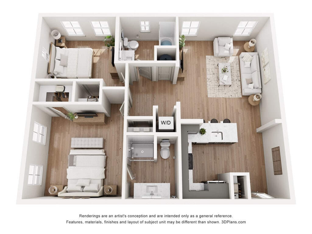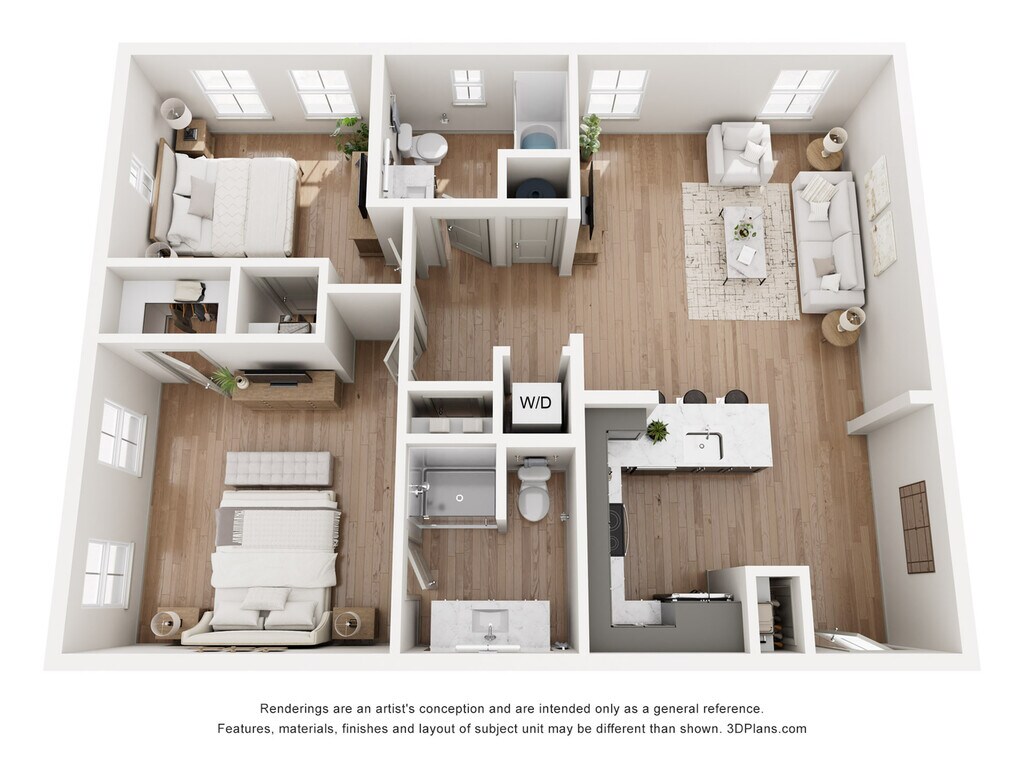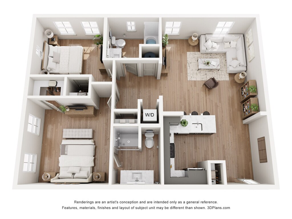 2 Dormitorios, 2 Baños, 1088 pies²Galería del Modelo