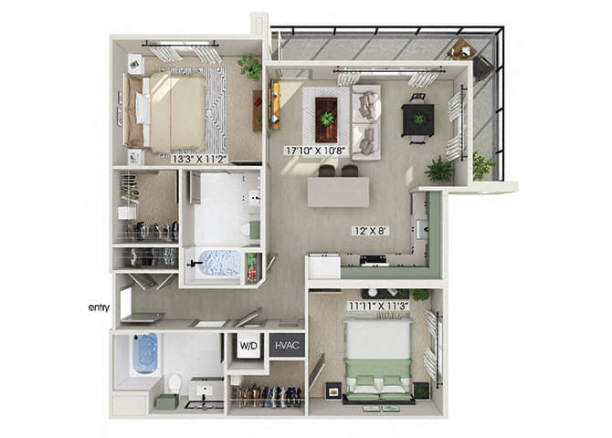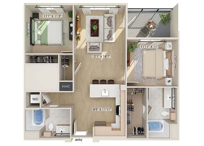 1 Dormitorio, 1 Baño, 690 pies²Disponible AhoraGalería del Modelo